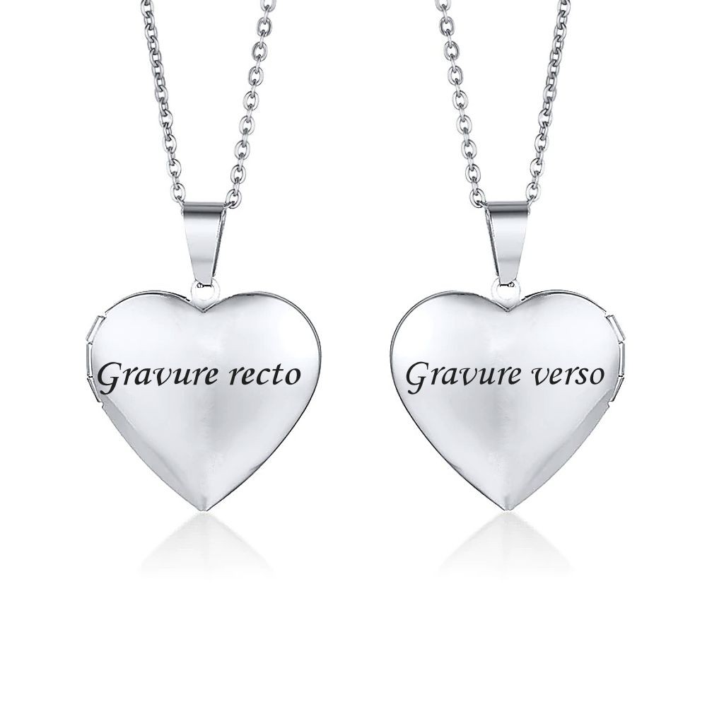 Collier Cœur Médaillon Photo Personnalisé Gravé Recto Verso Acier