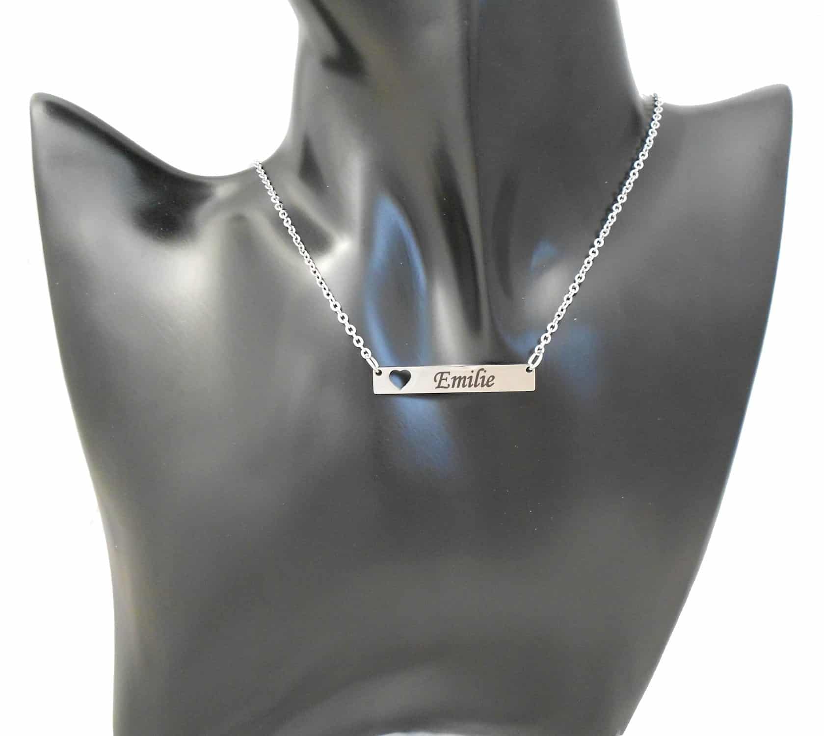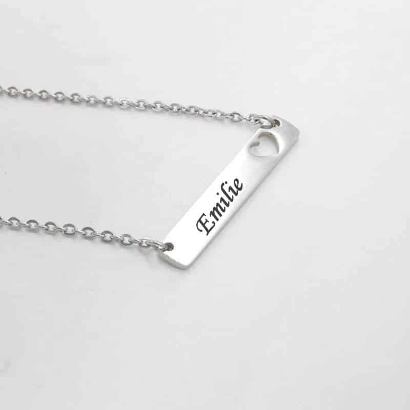 Quand tu veux offrir un bijou féminin et personnel qui se porte tous les jours sans en faire trop, ce collier est exactement ce qu’il faut. La plaque cœur ajourée gravée — avec chaîne fine en acier — est faite pour celles qui aiment les bijoux discrets qui portent un prénom ou un mot qui compte. Sur la plaque, gravez le prénom qui lui appartient.