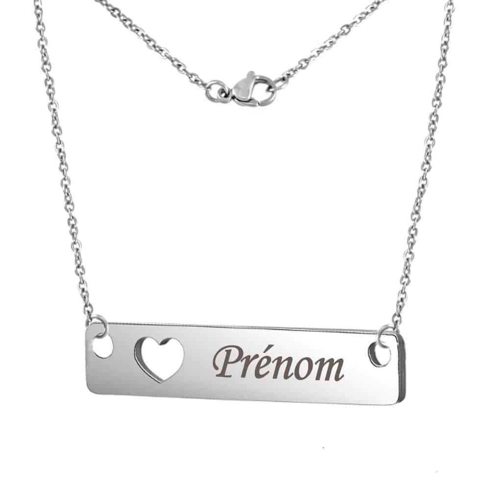 Collier Cœur gravé — Plaque ajourée acier personnalisée