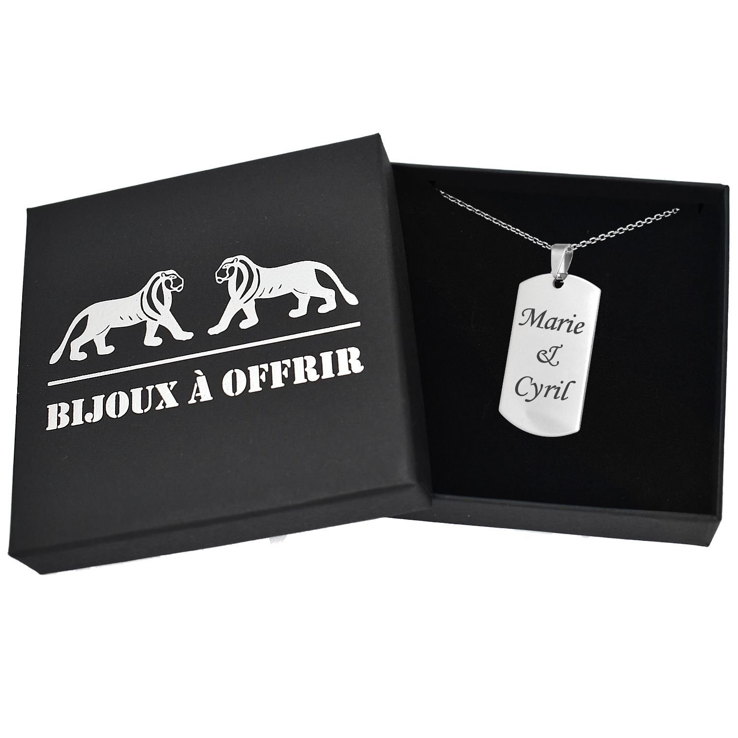 Tu cherches un bijou à offrir qui porte vraiment quelque chose de personnel ? Ce collier plaque militaire gravé est un cadeau fort, qui convient aussi bien à un homme qu’à une femme — sobre, élégant, chargé de sens. Gravez deux prénoms, une date ou un message court comme « Pour toujours ».