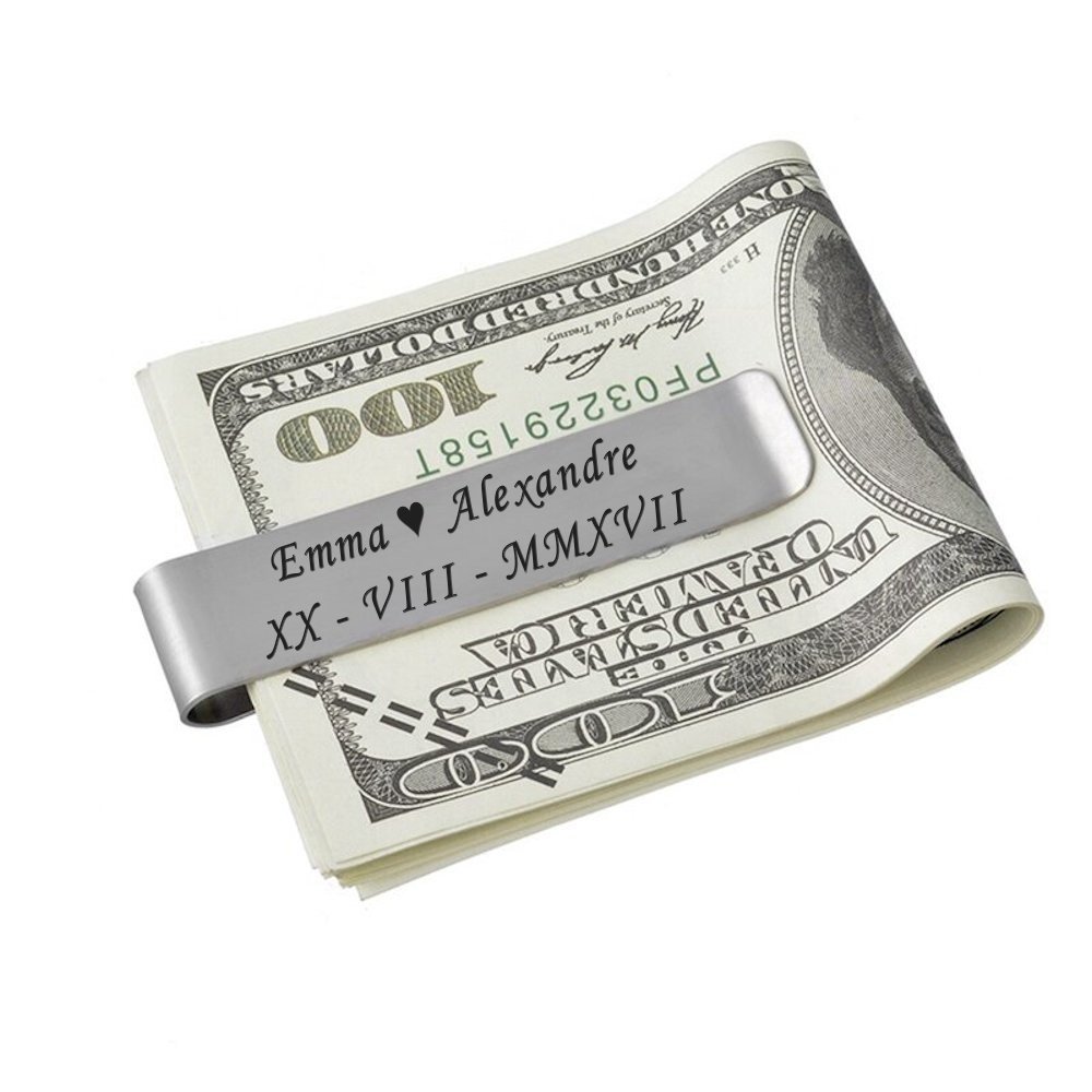 Pince à Billets gravée — Acier inoxydable personnalisé sur 2 lignes