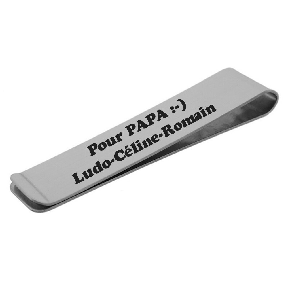 Tu cherches un cadeau élégant et utile pour un homme qui prend soin de ses affaires, que ce soit au bureau, en déplacement ou au quotidien ? La pince à billets gravée en acier inoxydable est faite pour ceux qui apprécient les objets sobres, bien faits et personnalisés. Gravez un prénom, une date ou un message court sur deux lignes.
