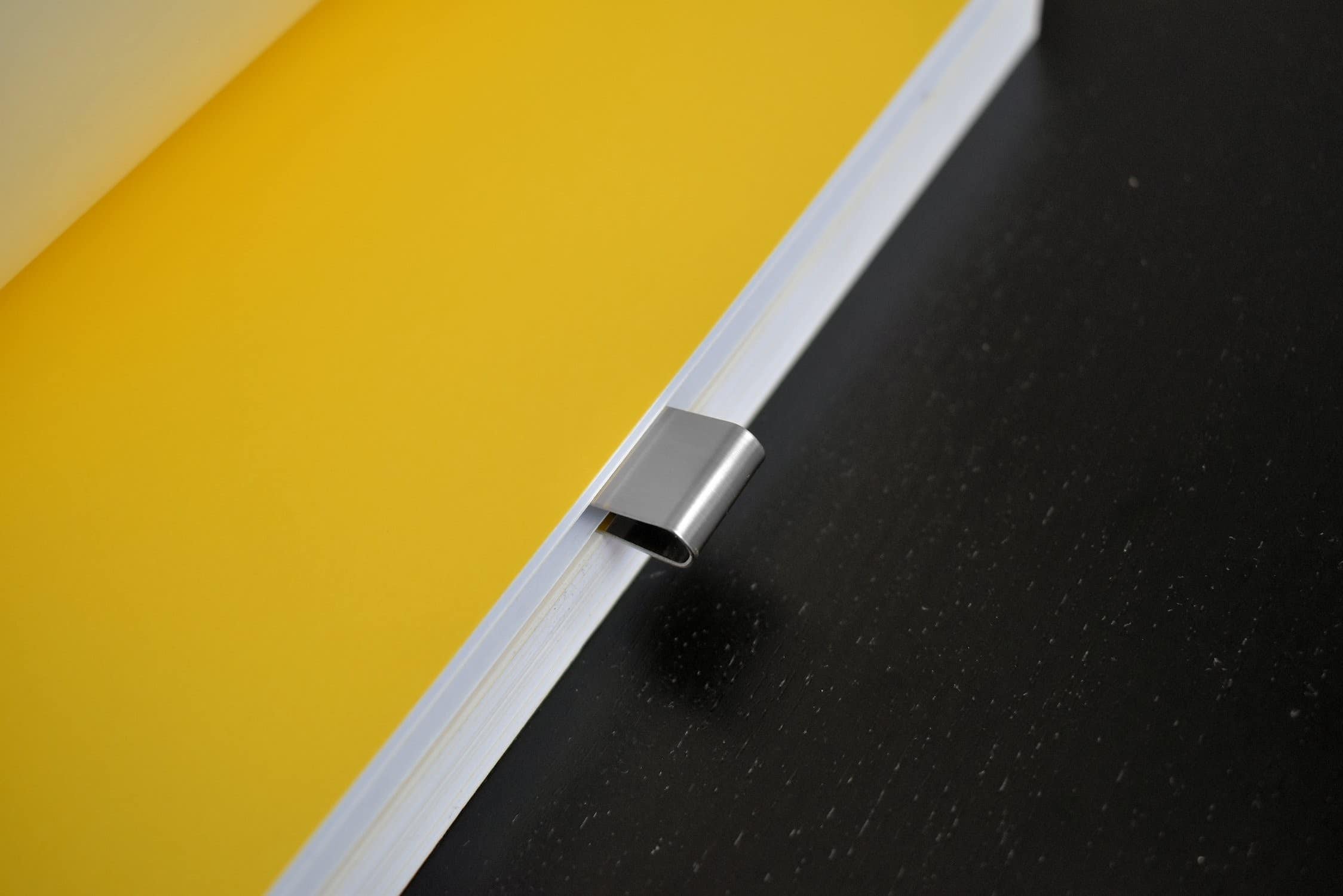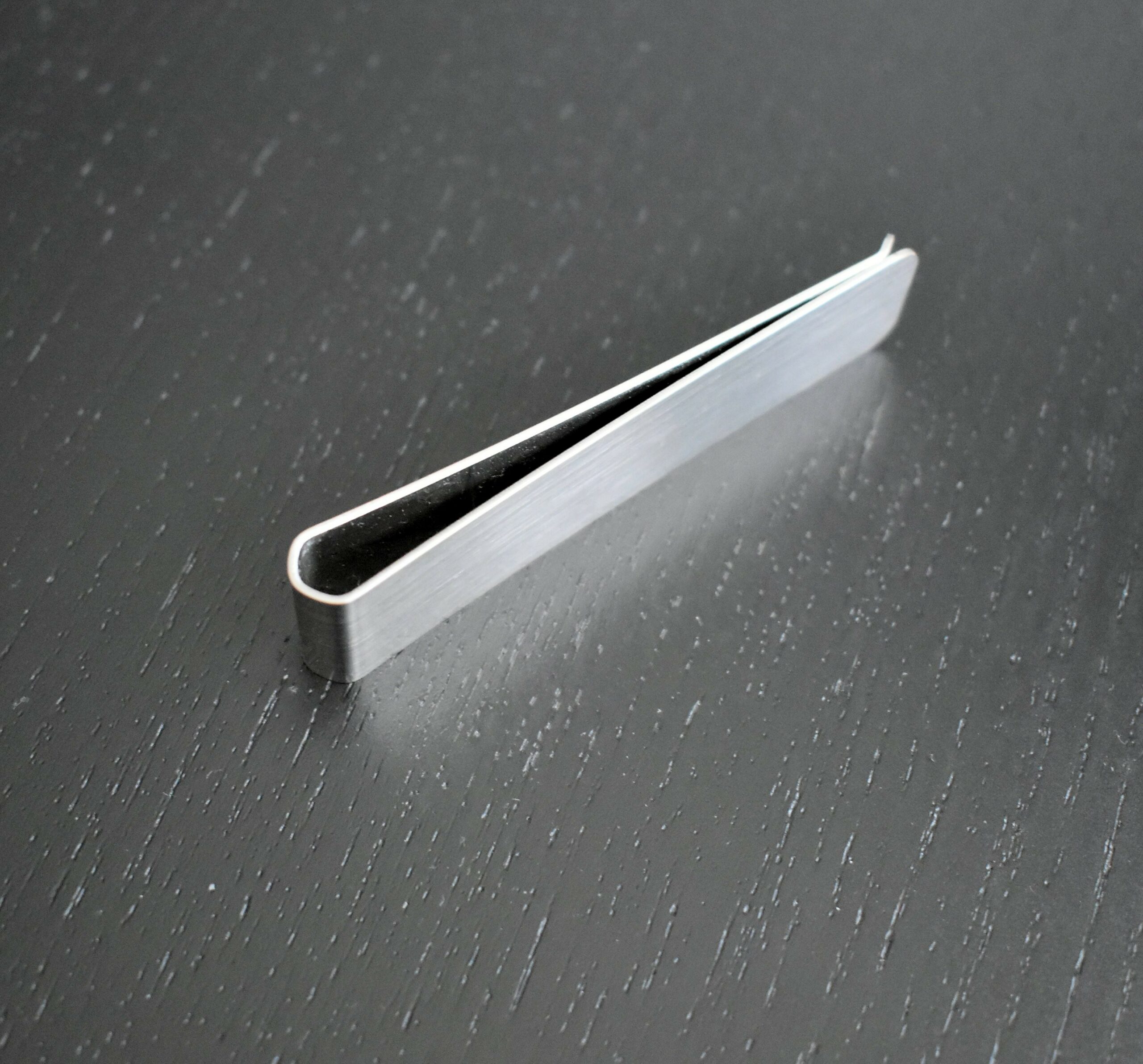 La pince est en acier inoxydable massif, à la finition brossée mate et élégante — sobre, sans fioriture, exactement ce qu'il faut pour un homme qui a du goût. Le mécanisme à ressort est solide et maintient les billets, cartes ou marque-pages sans les abîmer. Résistante à l'eau et à l'usure du quotidien, elle se glisse facilement dans une poche ou un portefeuille et s'utilise des années sans se déformer.