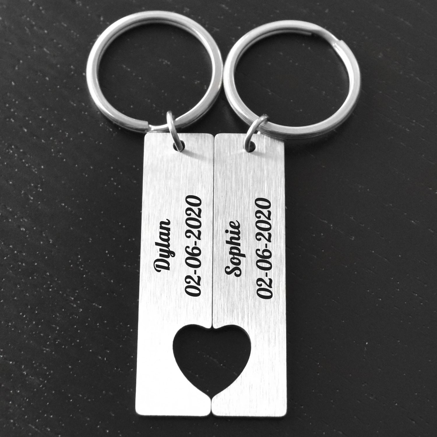 Tu cherches un cadeau de couple qui dit vraiment « on est faits l’un pour l’autre » sans tomber dans le kitsch ? Ce lot de deux porte-clés plaques acier s’emboîtent parfaitement — chaque moitié du cœur découpé ne trouve sa forme complète qu’avec l’autre. On grave les deux prénoms et la date du couple, un sur chaque plaque.