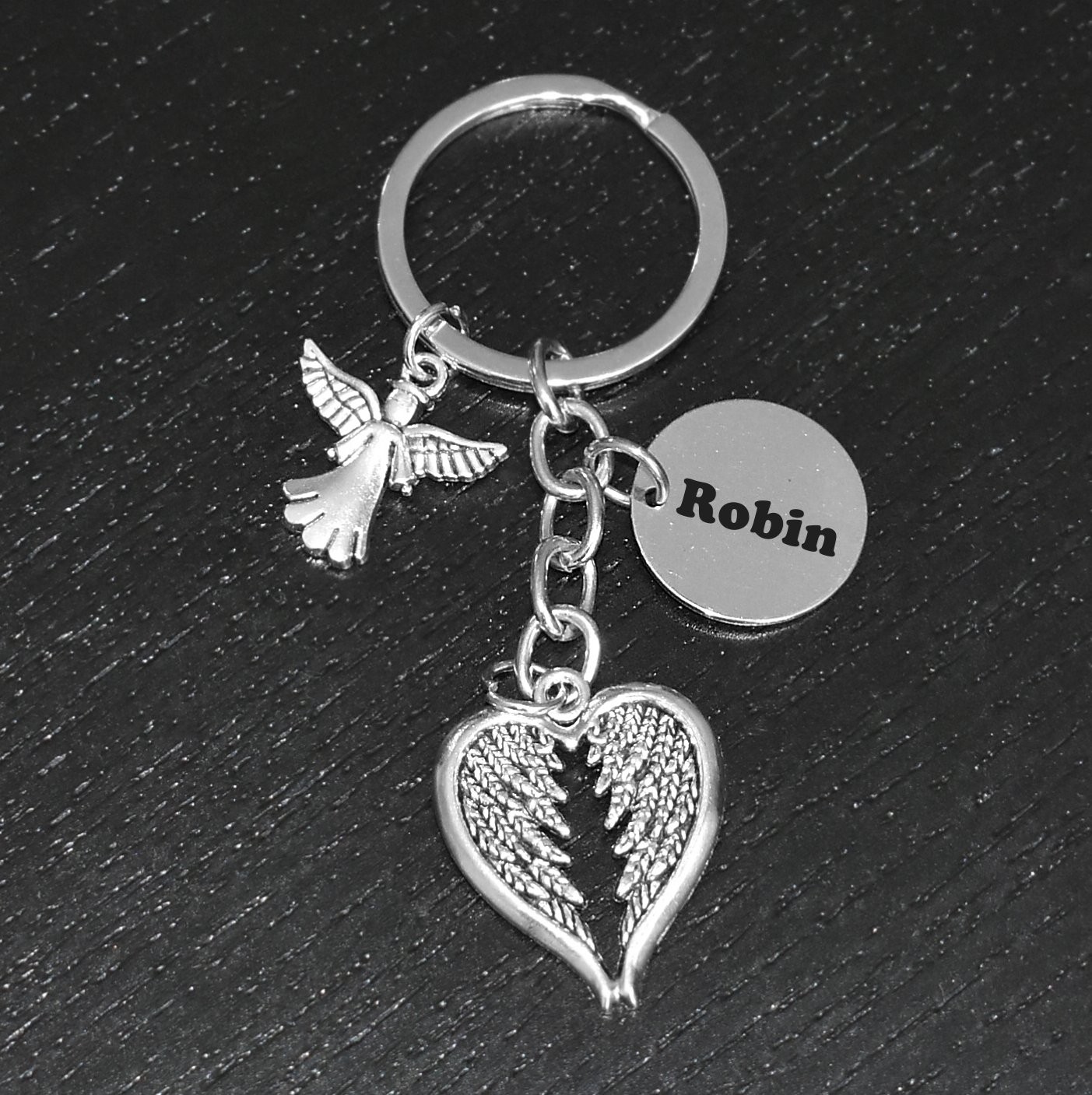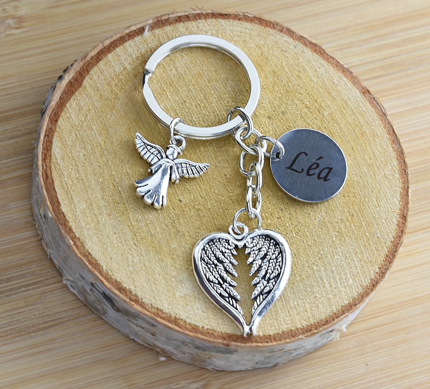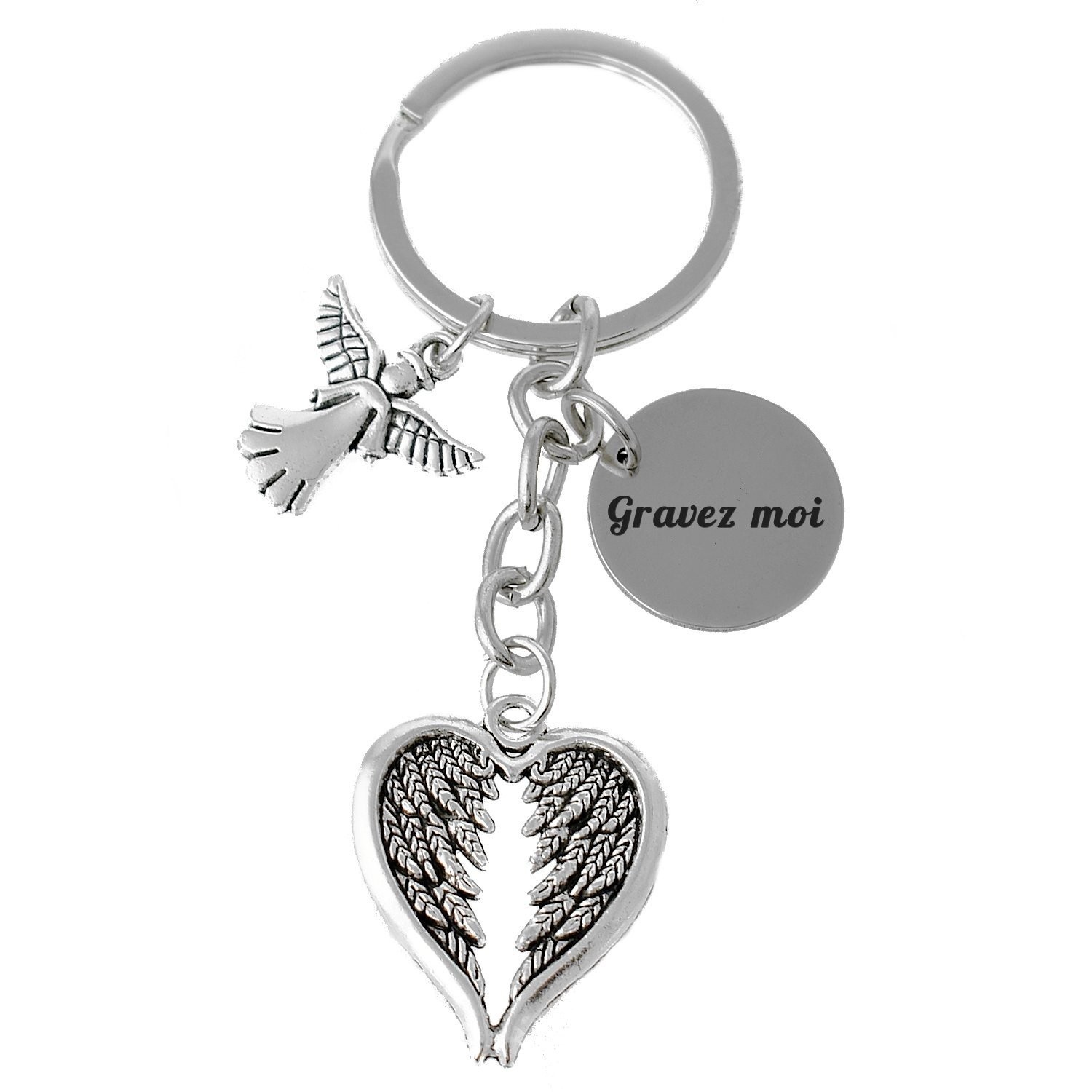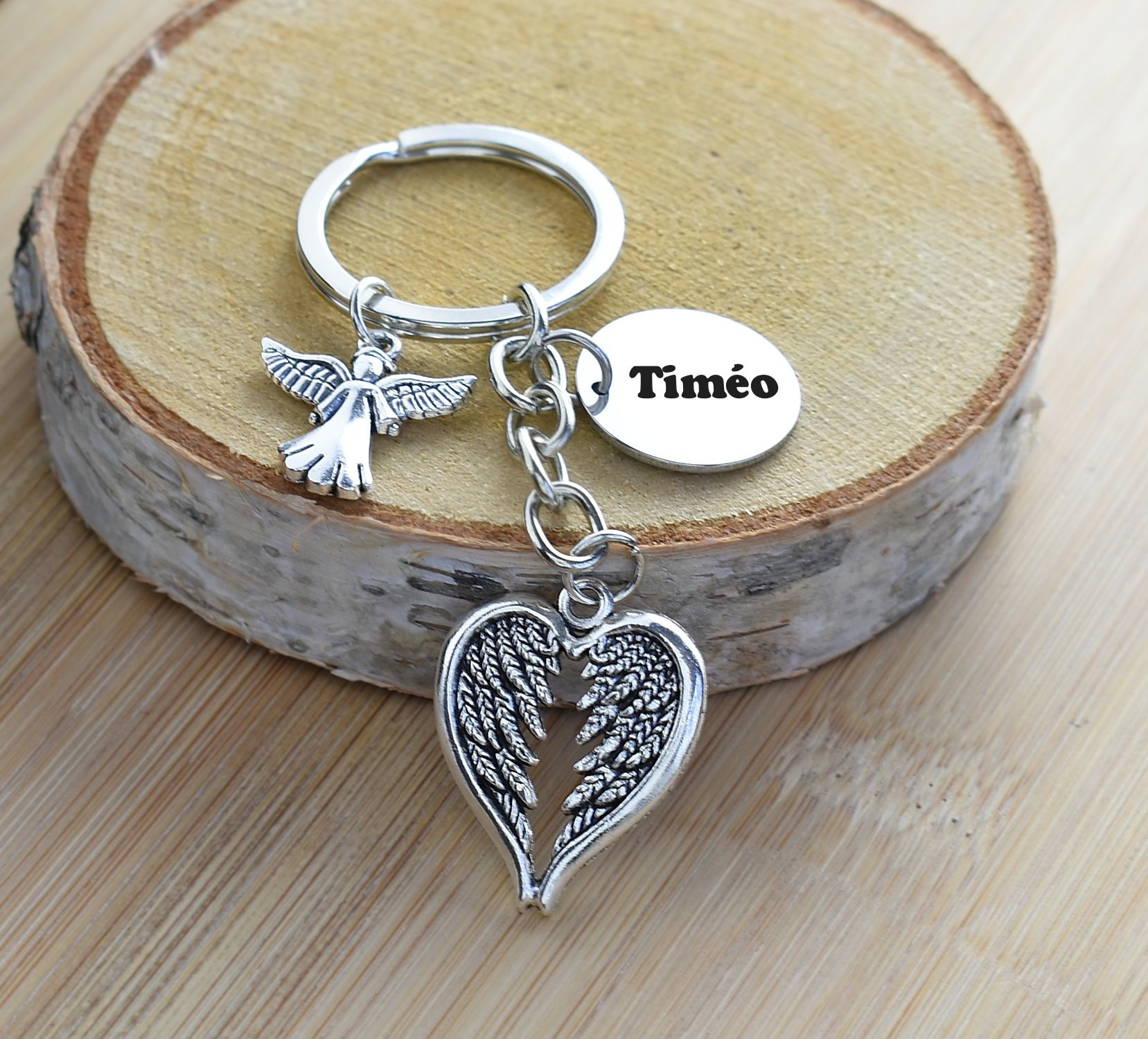 Porte-clés Ange Cœur Personnalisé Gravé – Cadeau Deuil, Protection ou Souvenir d’un Être Cher