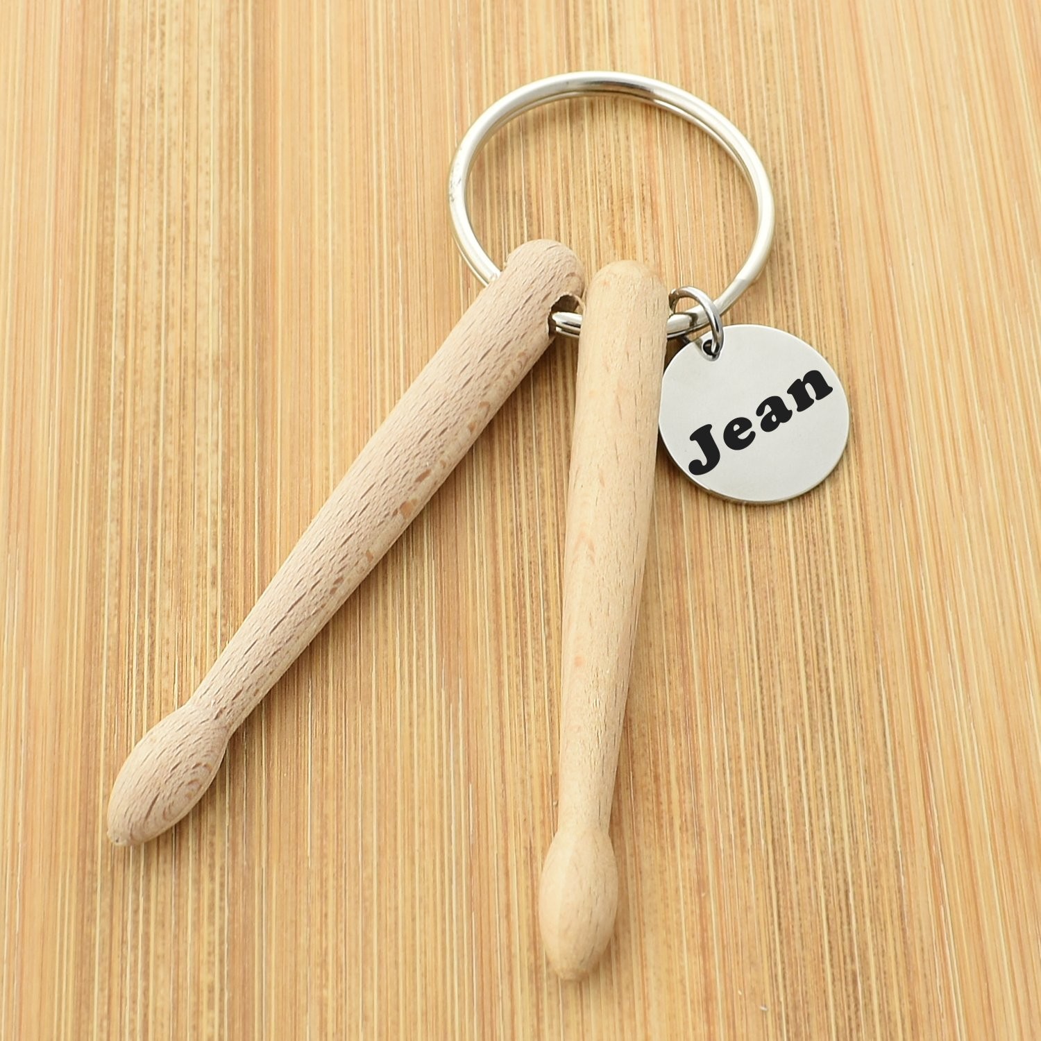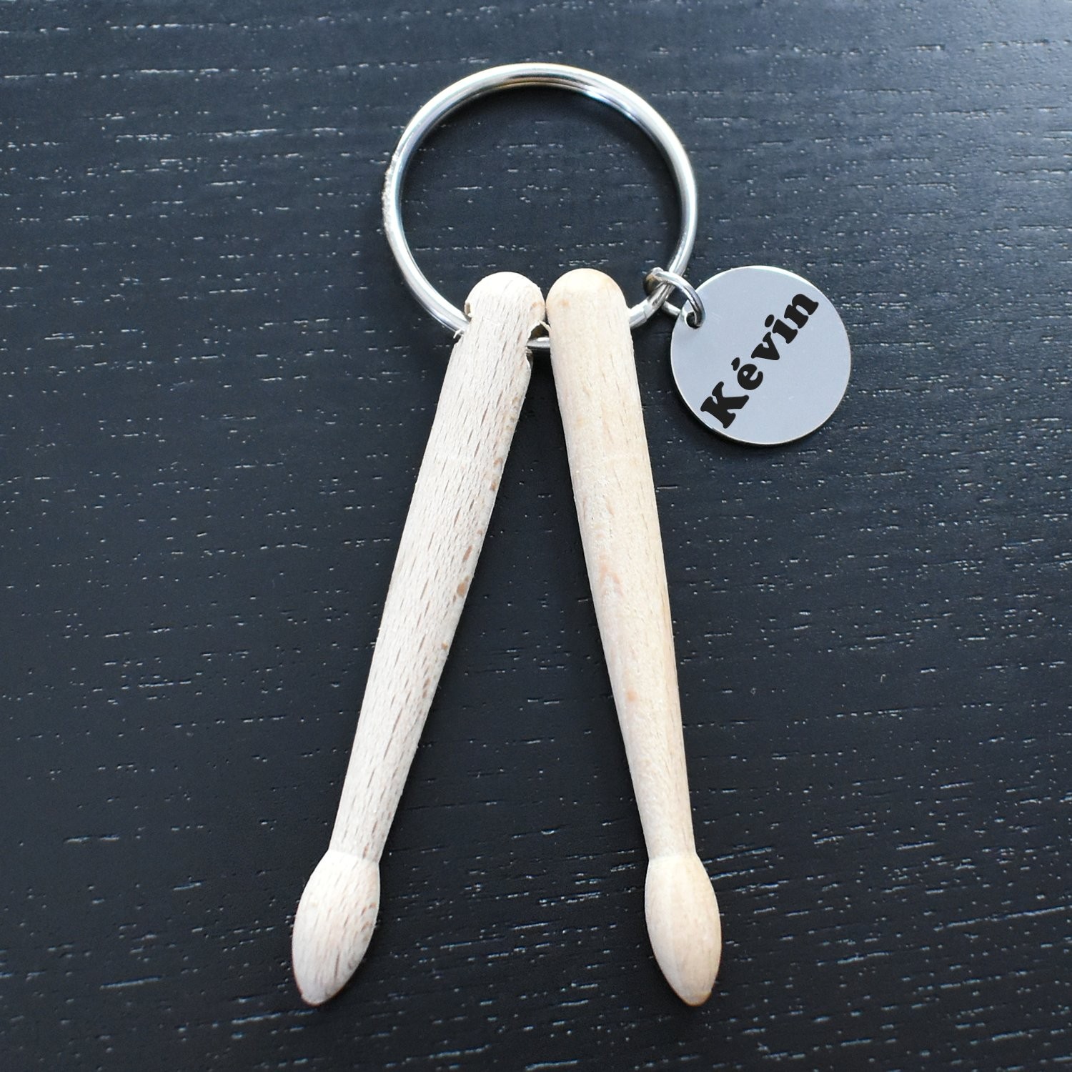 Porte-clés Batterie gravé — Baguettes Bois Cadeau Musicien Personnalisé