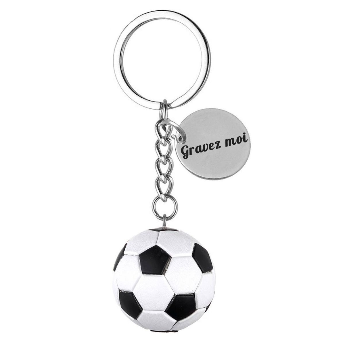 Tu cherches un cadeau pour quelqu’un qui vit pour le football, le terrain et les matchs du dimanche ? Le porte-clés Football gravé — ballon et médaille — dit exactement ce qu’il faut : ce joueur mérite qu’on pense à lui. Sur la médaille ronde, gravez un prénom, un surnom d’équipe ou une date de match inoubliable.