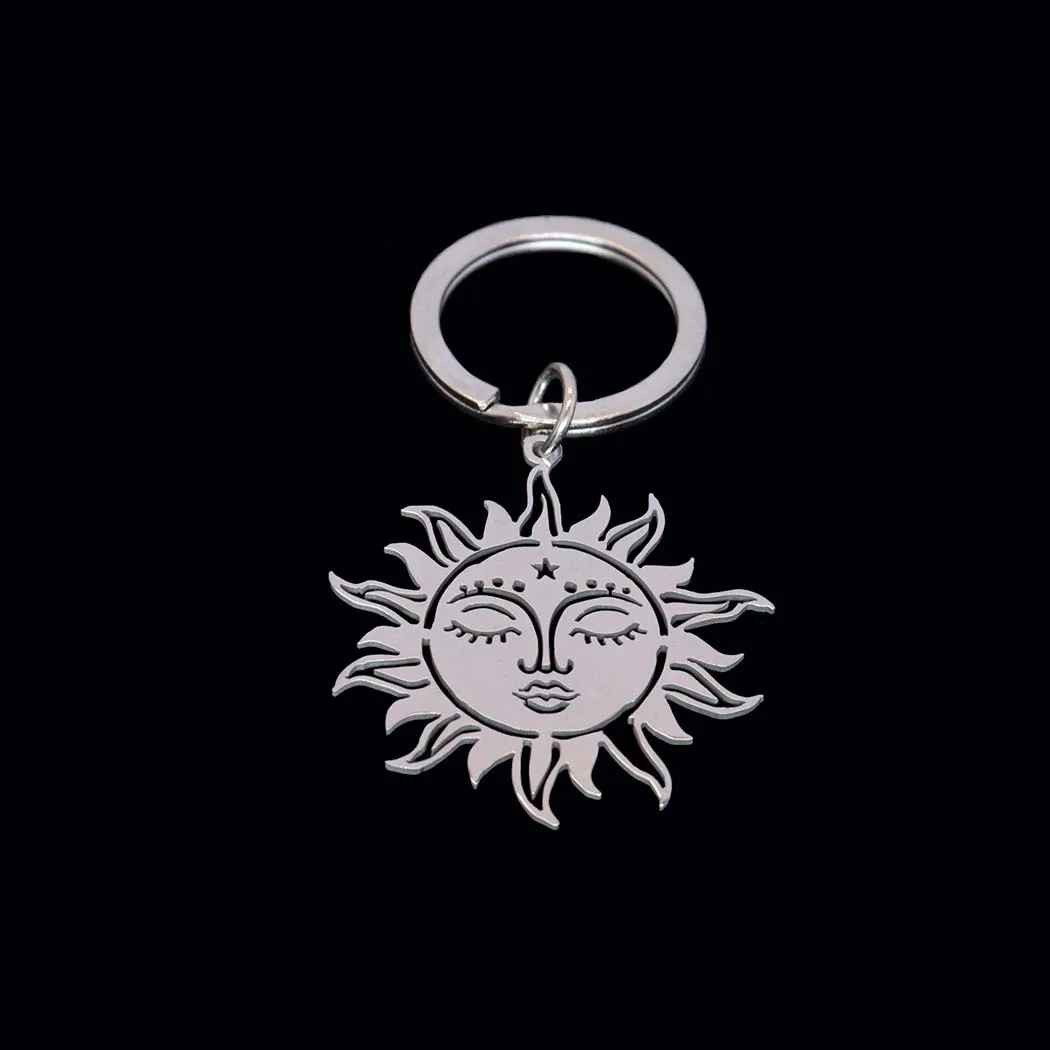 Porte-clés Soleil Mystique gravé — Cadeau Spirituel Personnalisé en Acier