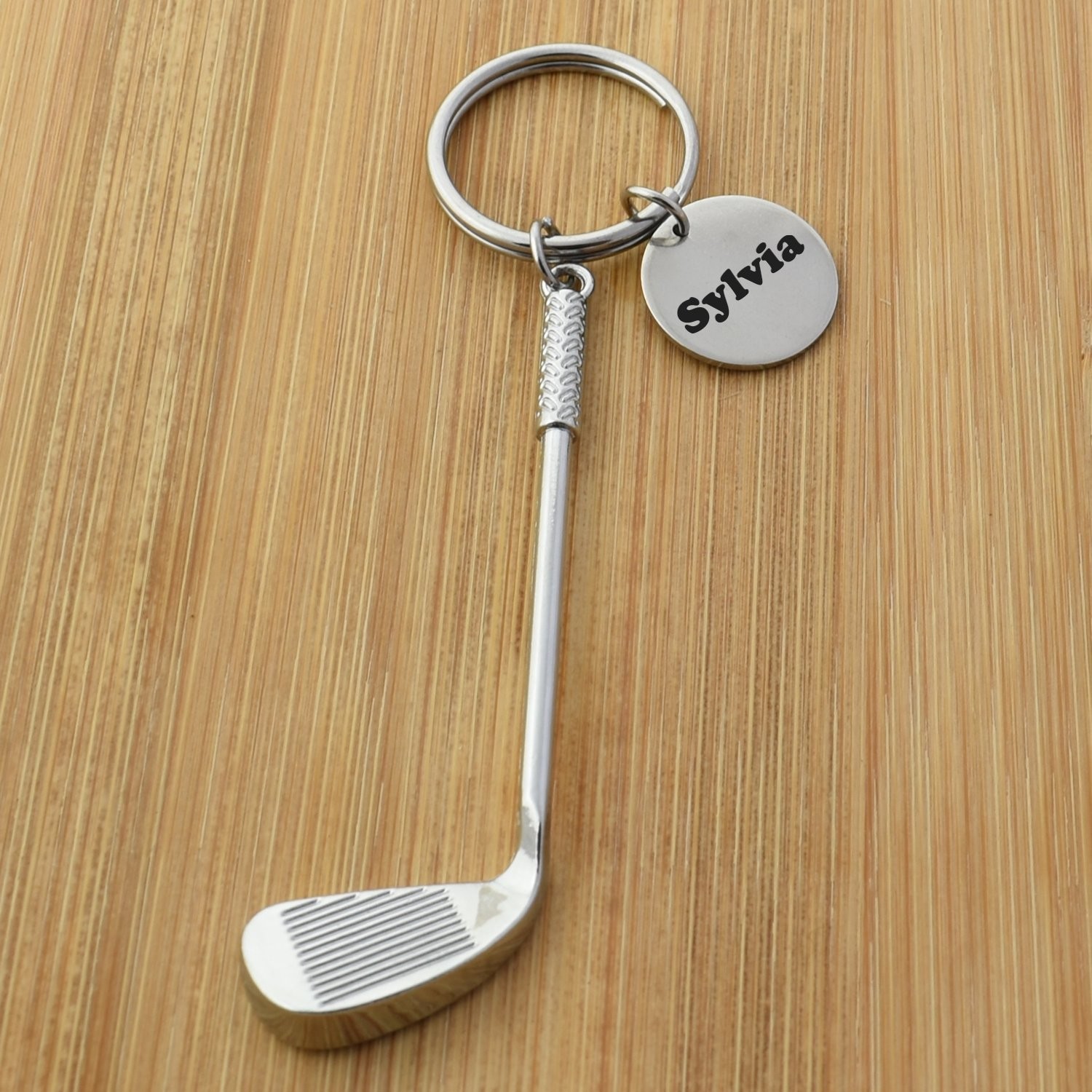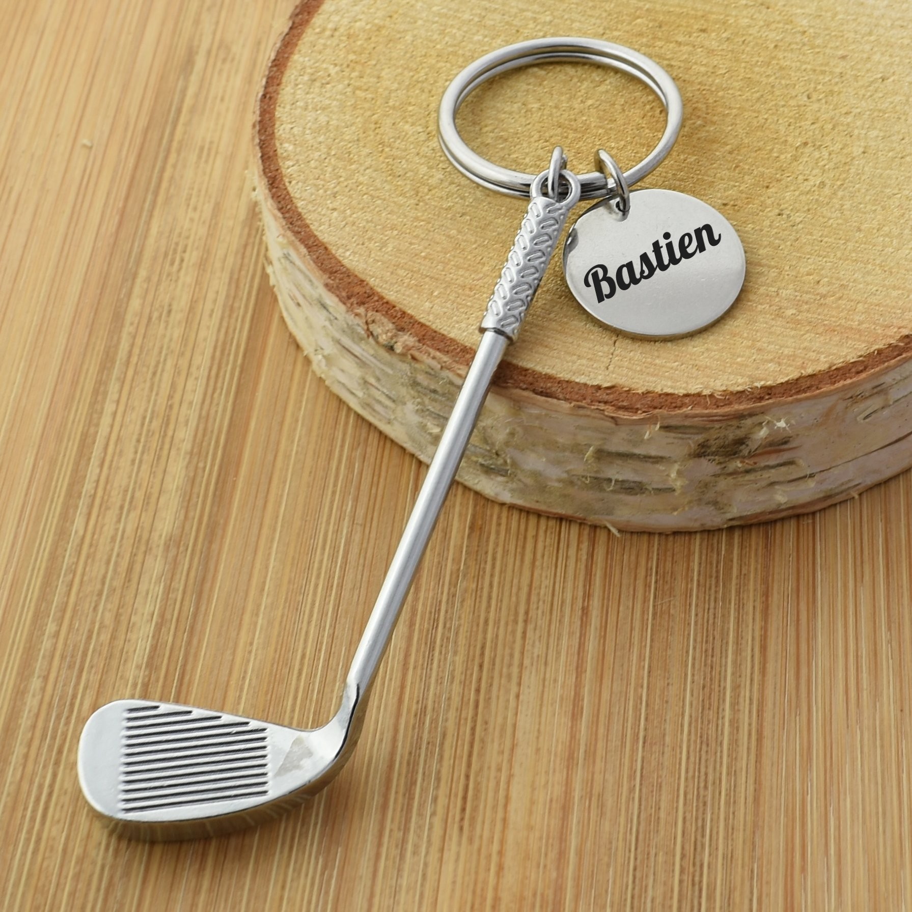 Porte-clés Golf gravé — Club Fer Personnalisé Cadeau Golfeur Métal Argenté
