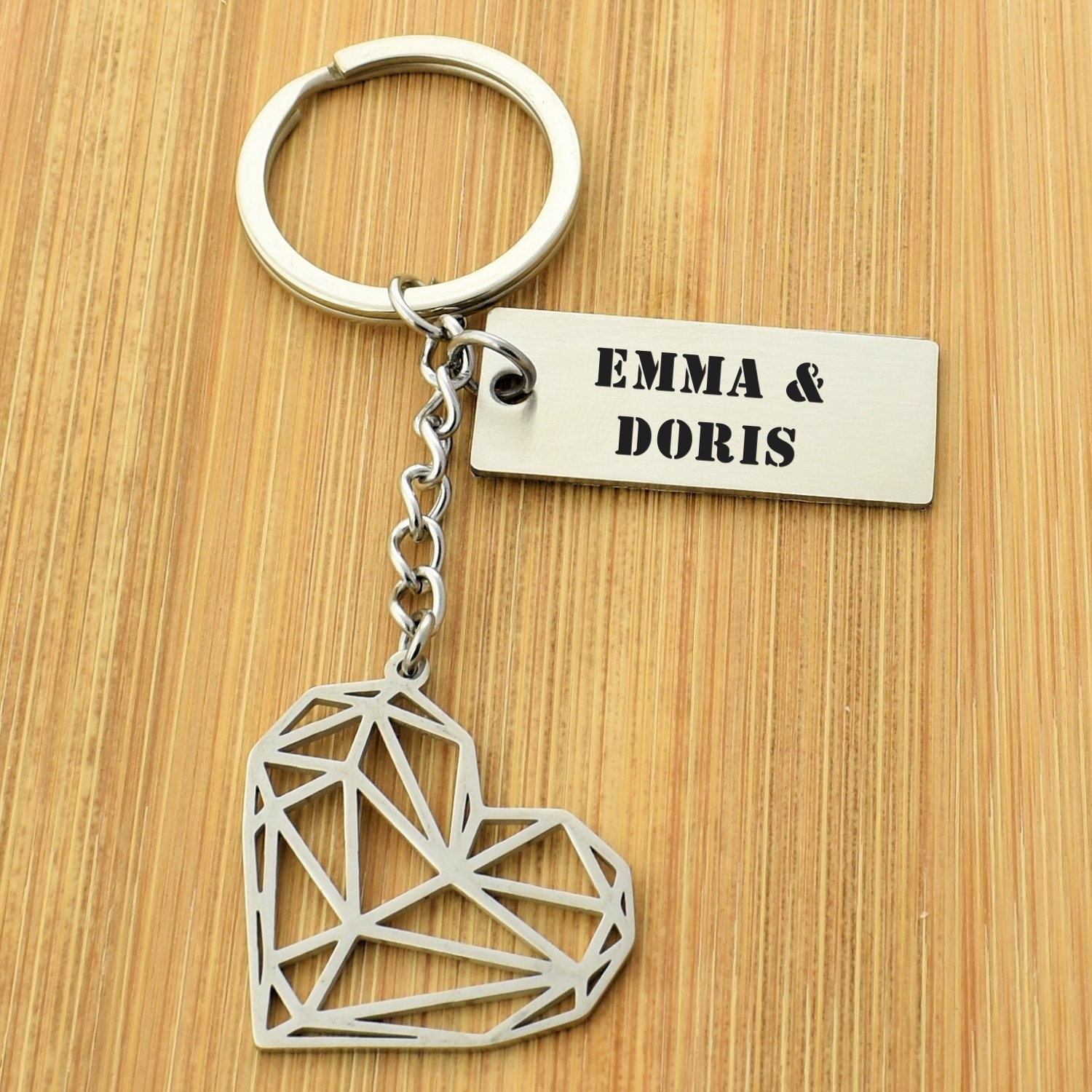 Porte-clés Cœur Origami gravé — Plaque 2 Lignes Cadeau Amour Personnalisé Acier