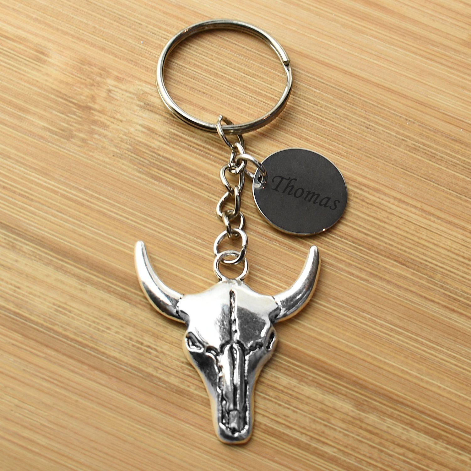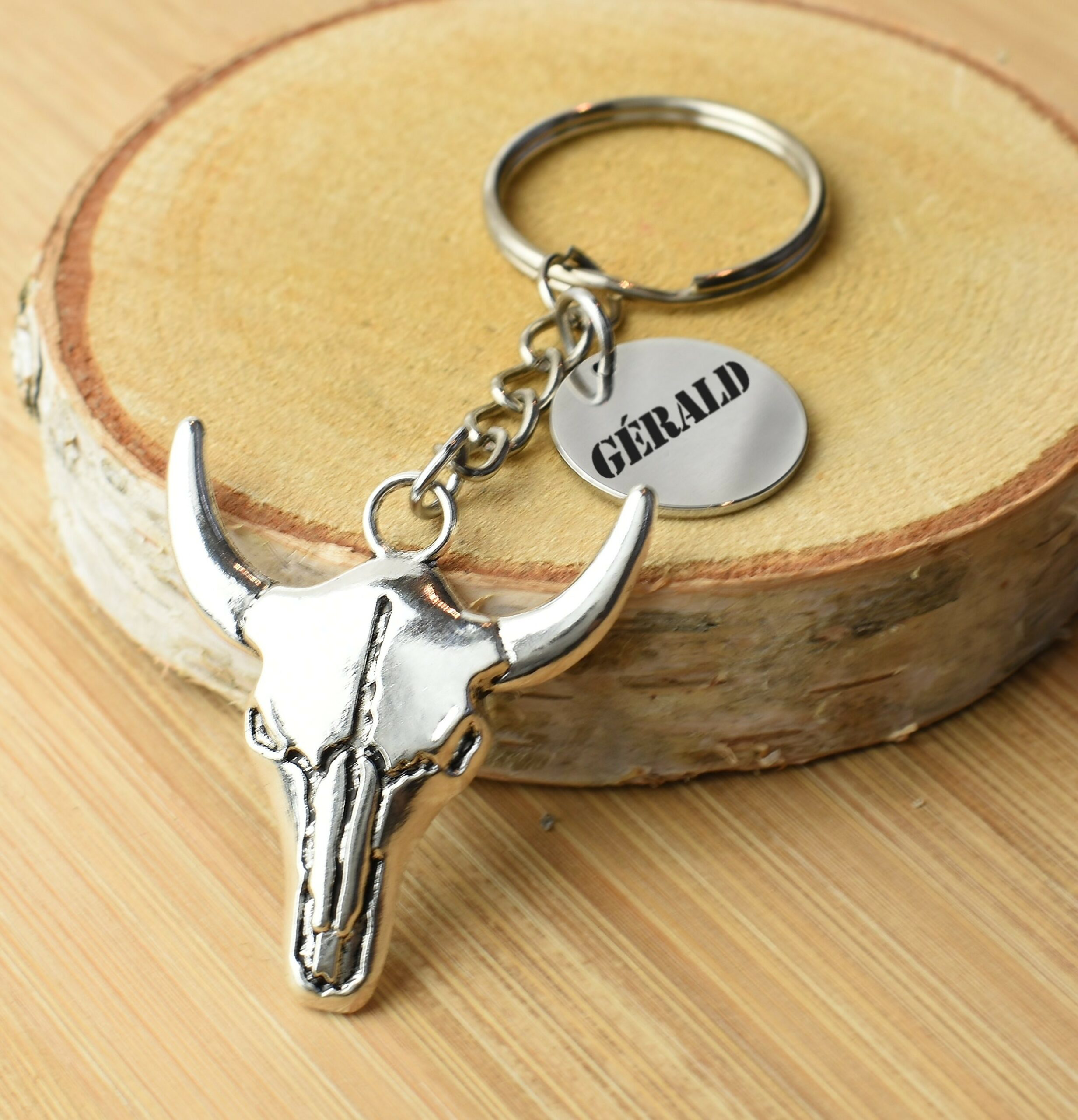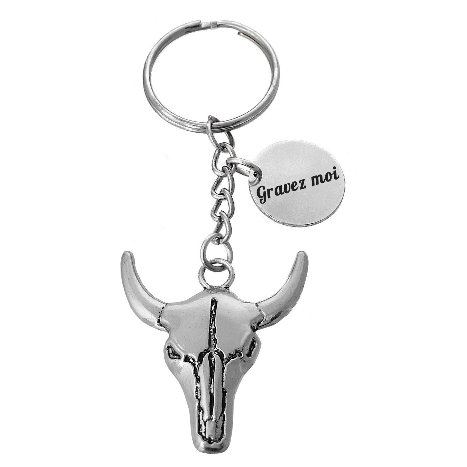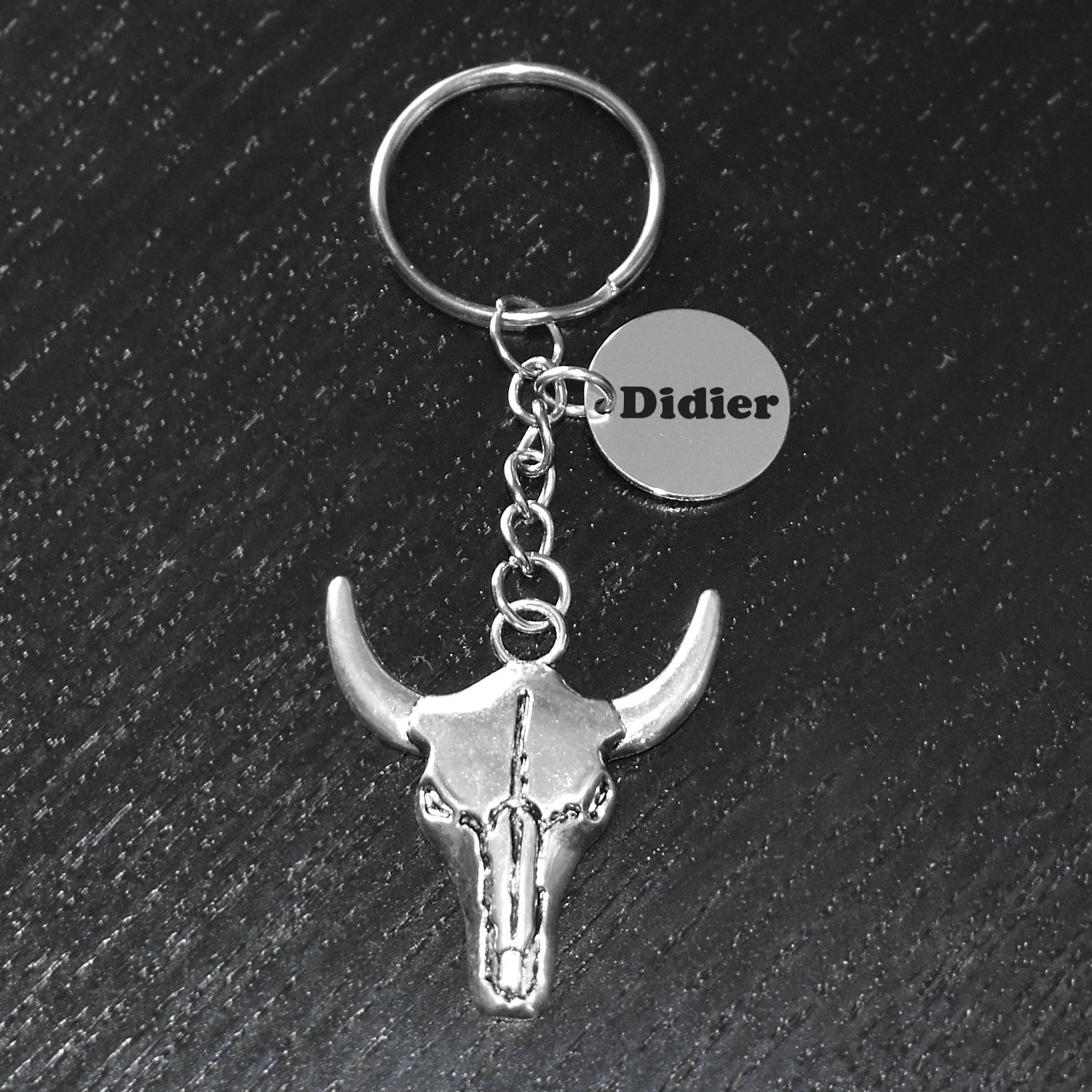 Porte-clés Crâne de Buffle Personnalisé Gravé – Cadeau Western, Bohème Sauvage ou Esprit Libre