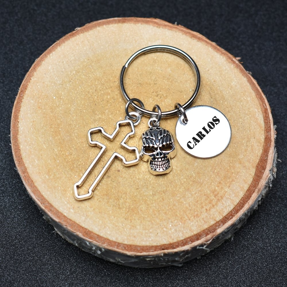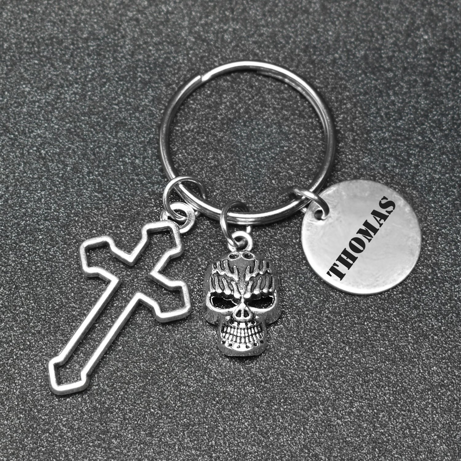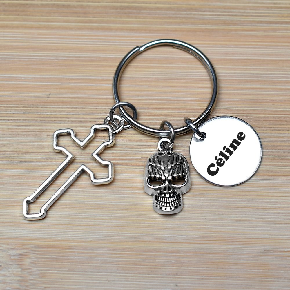 Porte-clés Croix & Tête de Mort Personnalisé Gravé – Cadeau Rock, Gothique ou Style Biker