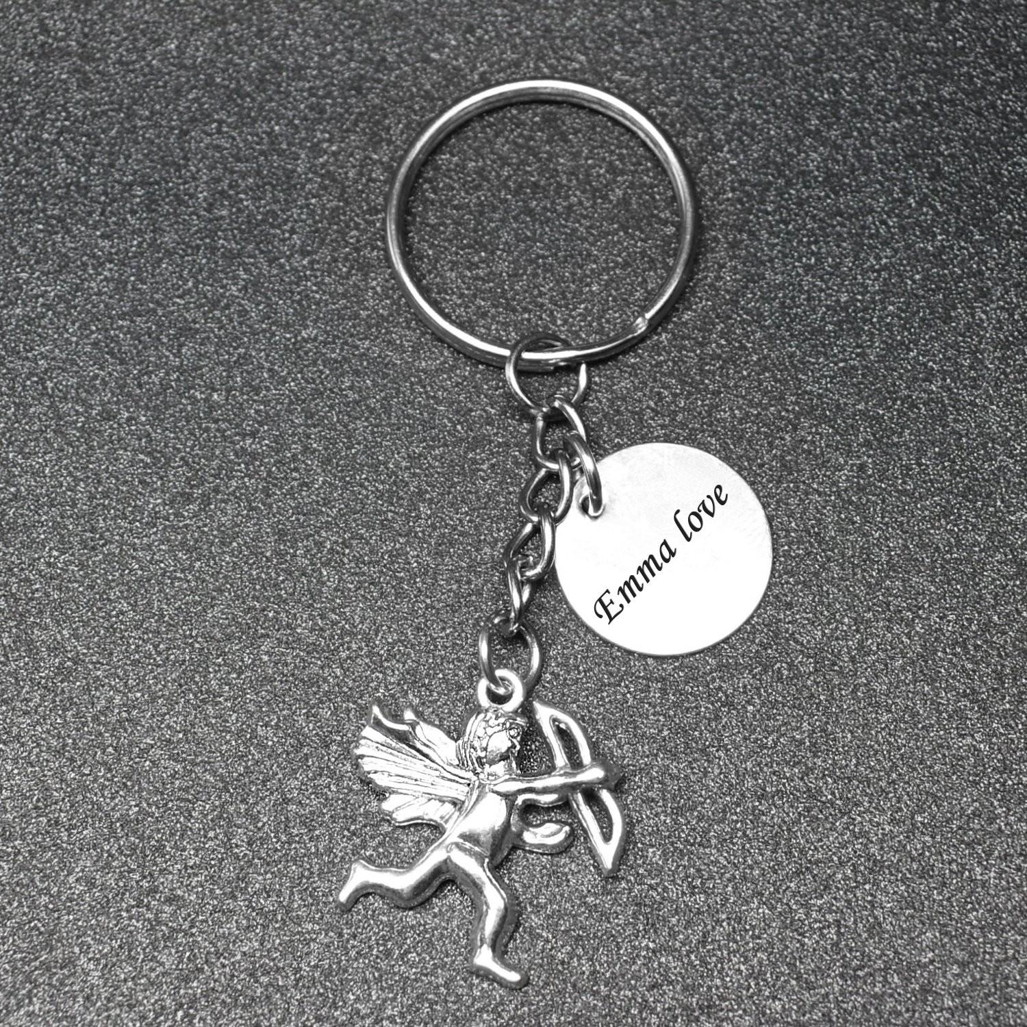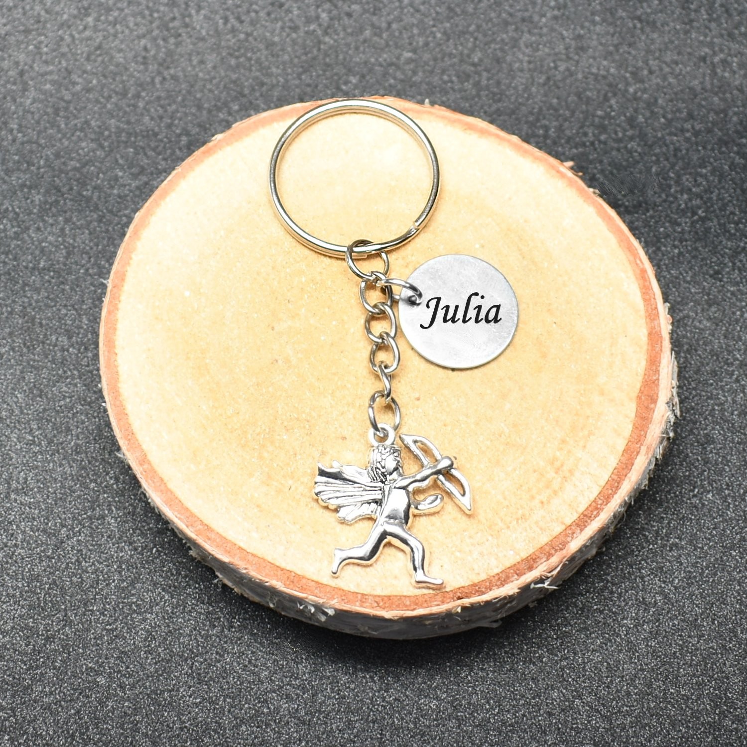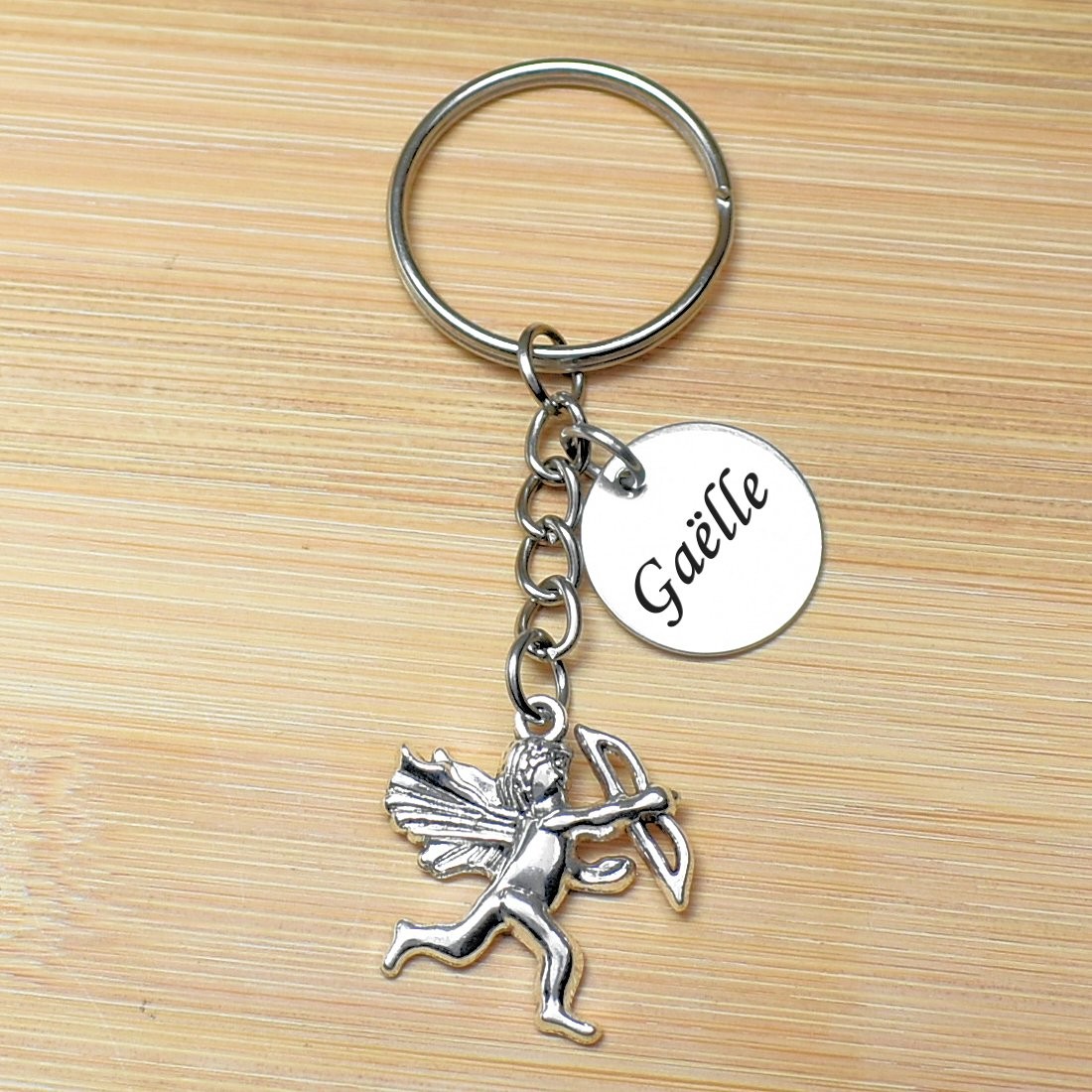 Porte-clés Cupidon Personnalisé Gravé – Cadeau Saint-Valentin, Coup de Foudre ou Amour Romantique