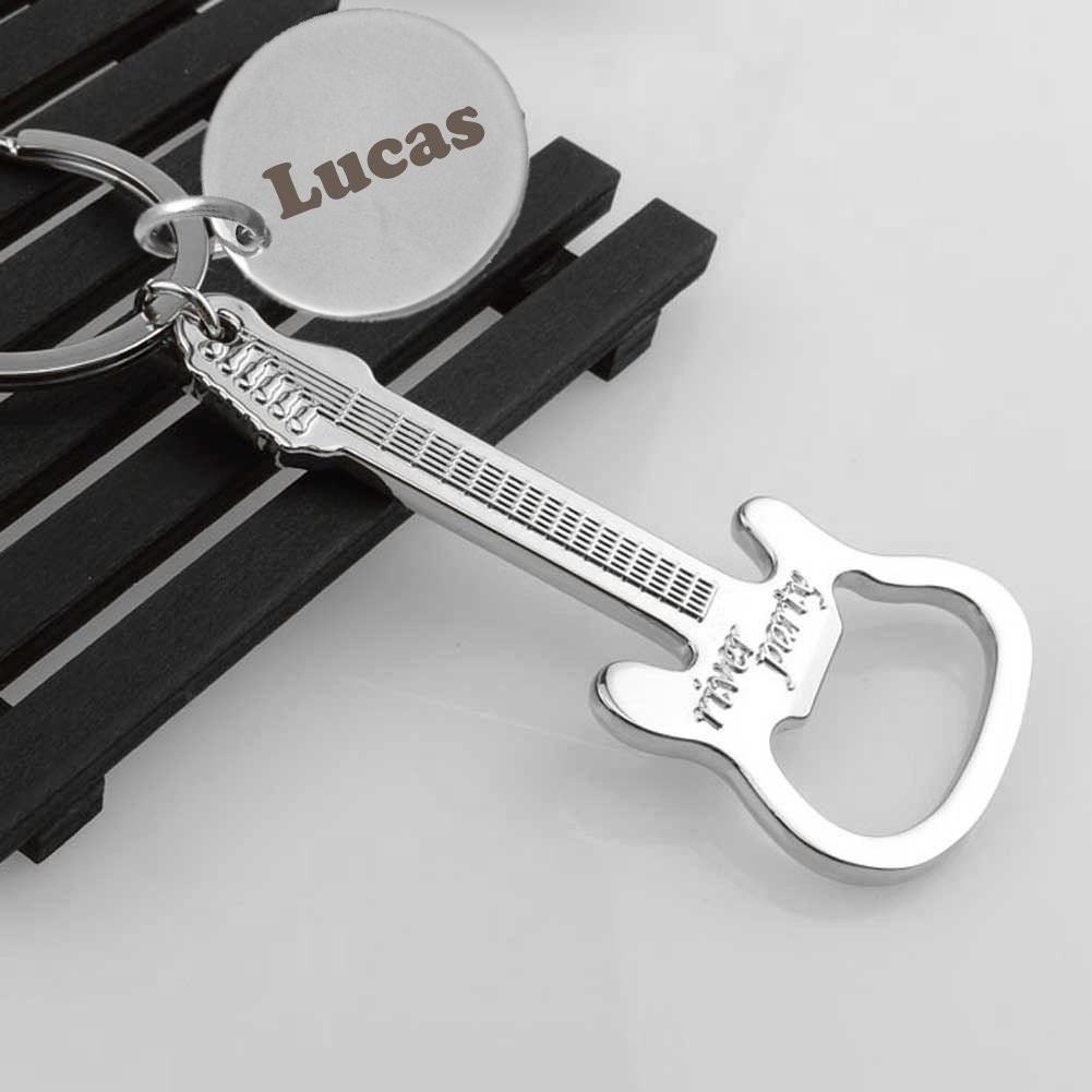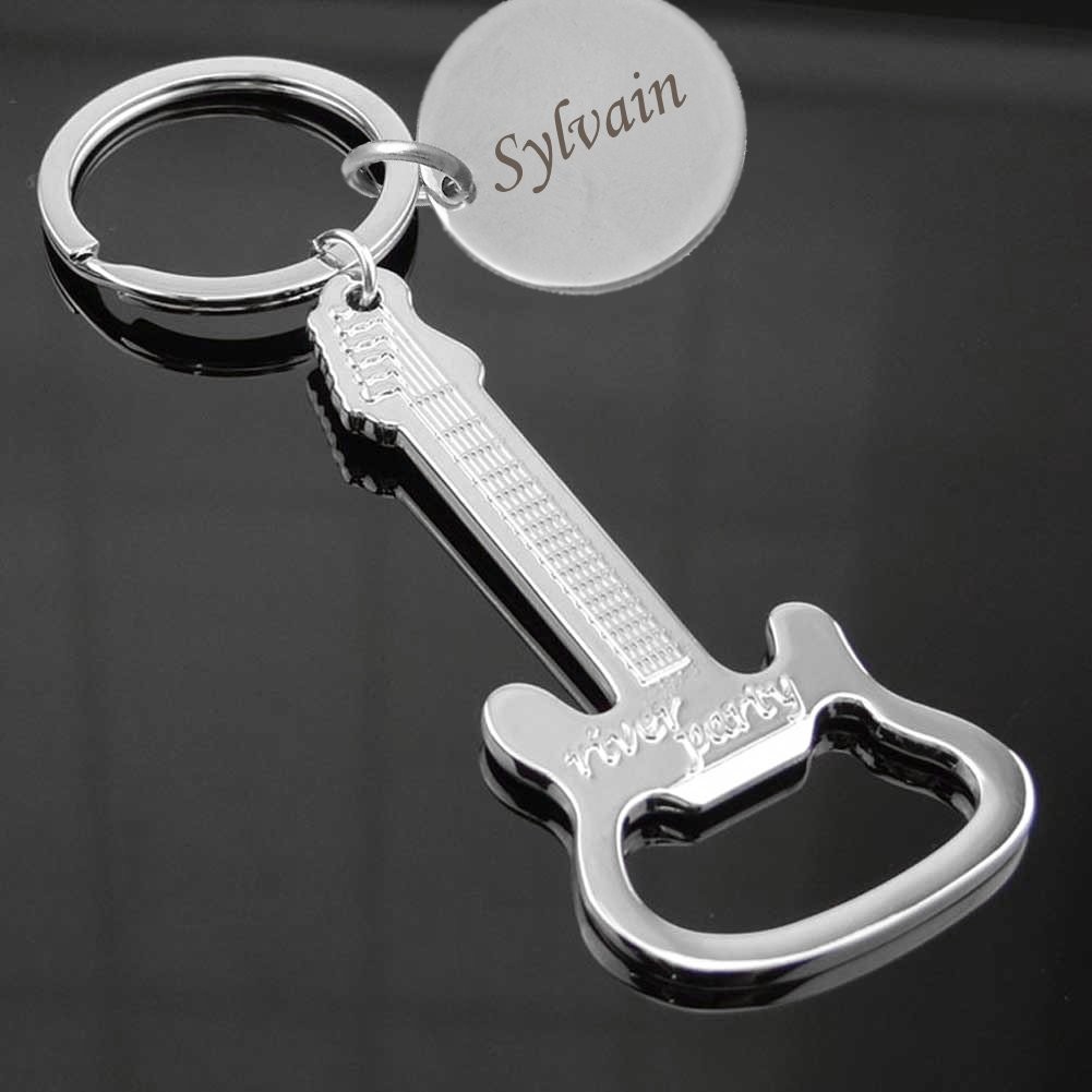 Porte-clés Guitare Décapsuleur gravé — After Party Cadeau Musicien Rock Personnalisé Métal