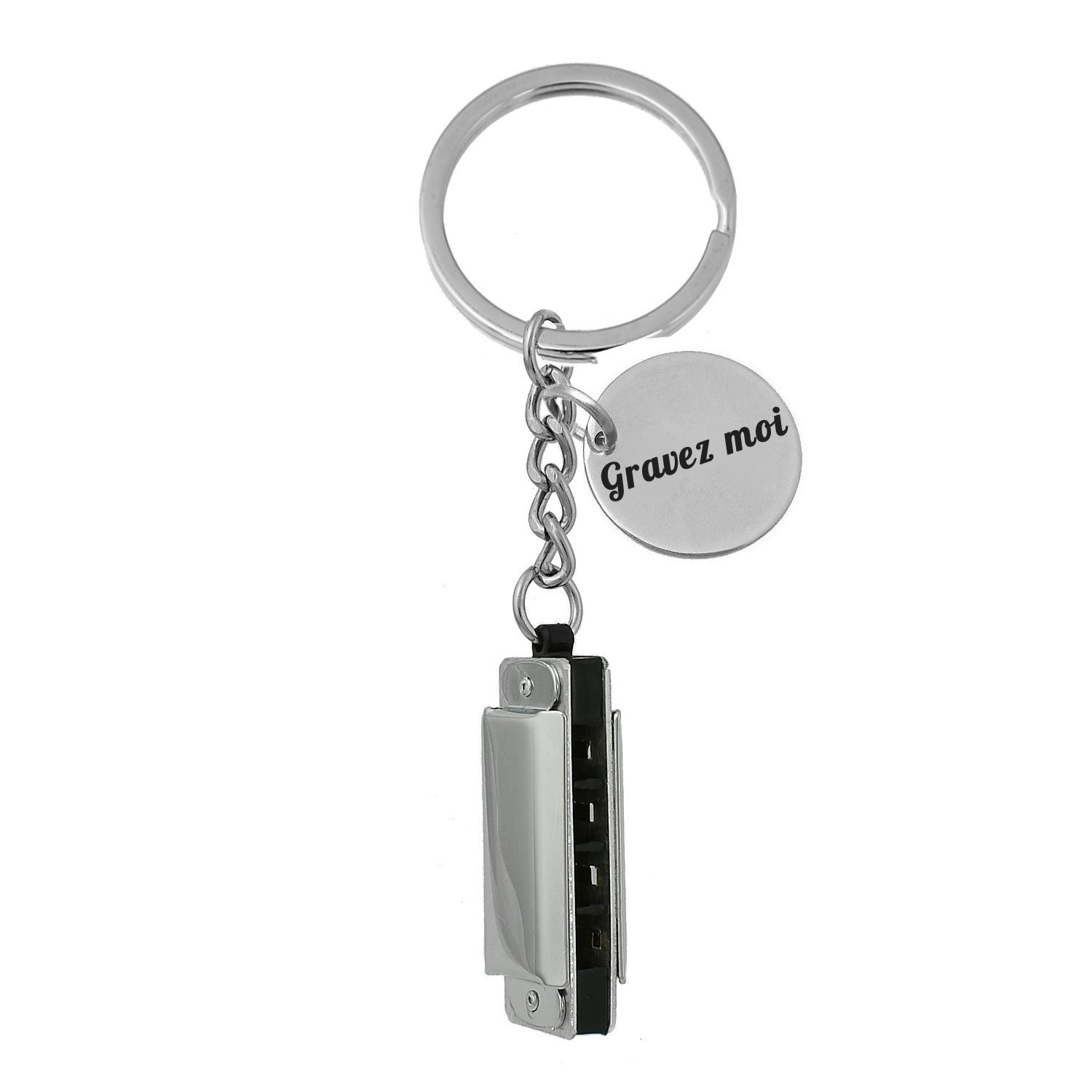 Porte-clés Harmonica Personnalisé Gravé – Cadeau Musicien, Blues ou Passion Folk & Country