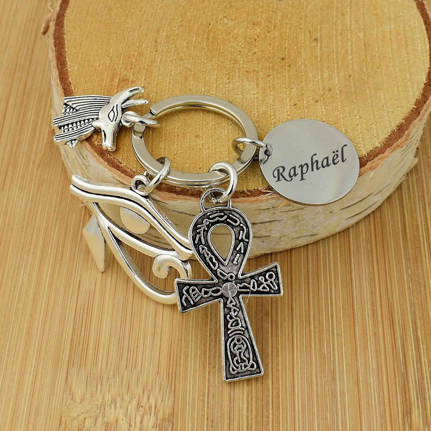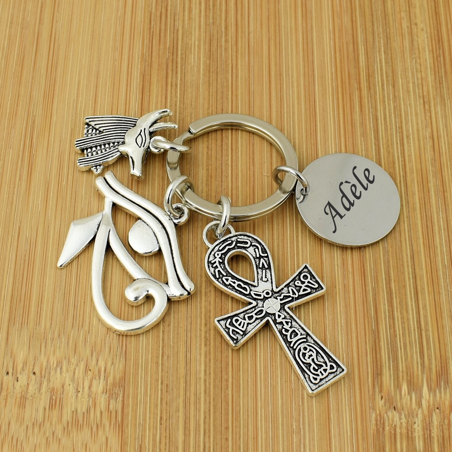 Porte-clés Égypte gravé — Œil d’Horus Ânkh Anubis Cadeau Mythologie Personnalisé