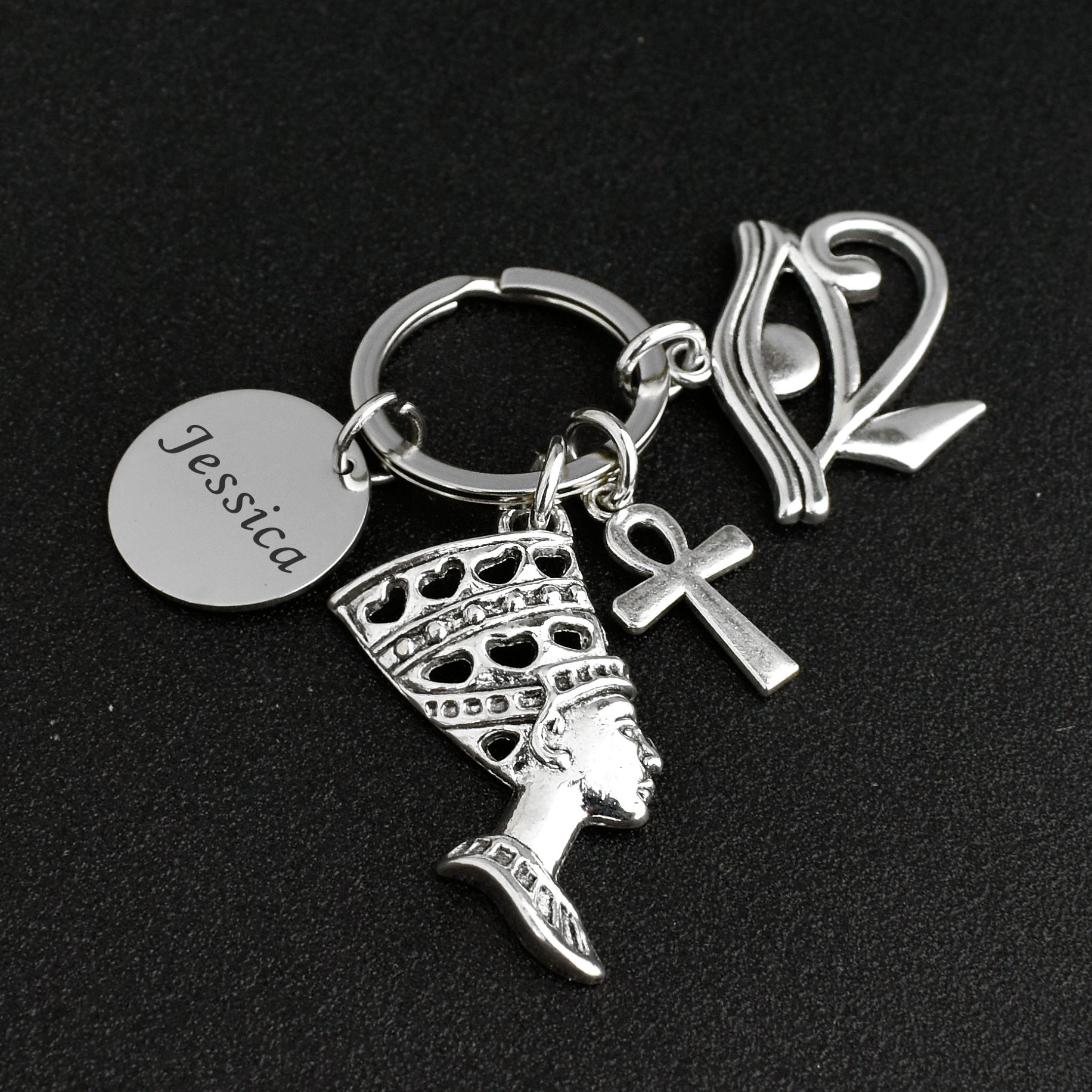 Porte-clés Égypte gravé — Œil d’Horus Ânkh Néfertiti Cadeau Mythologie Personnalisé