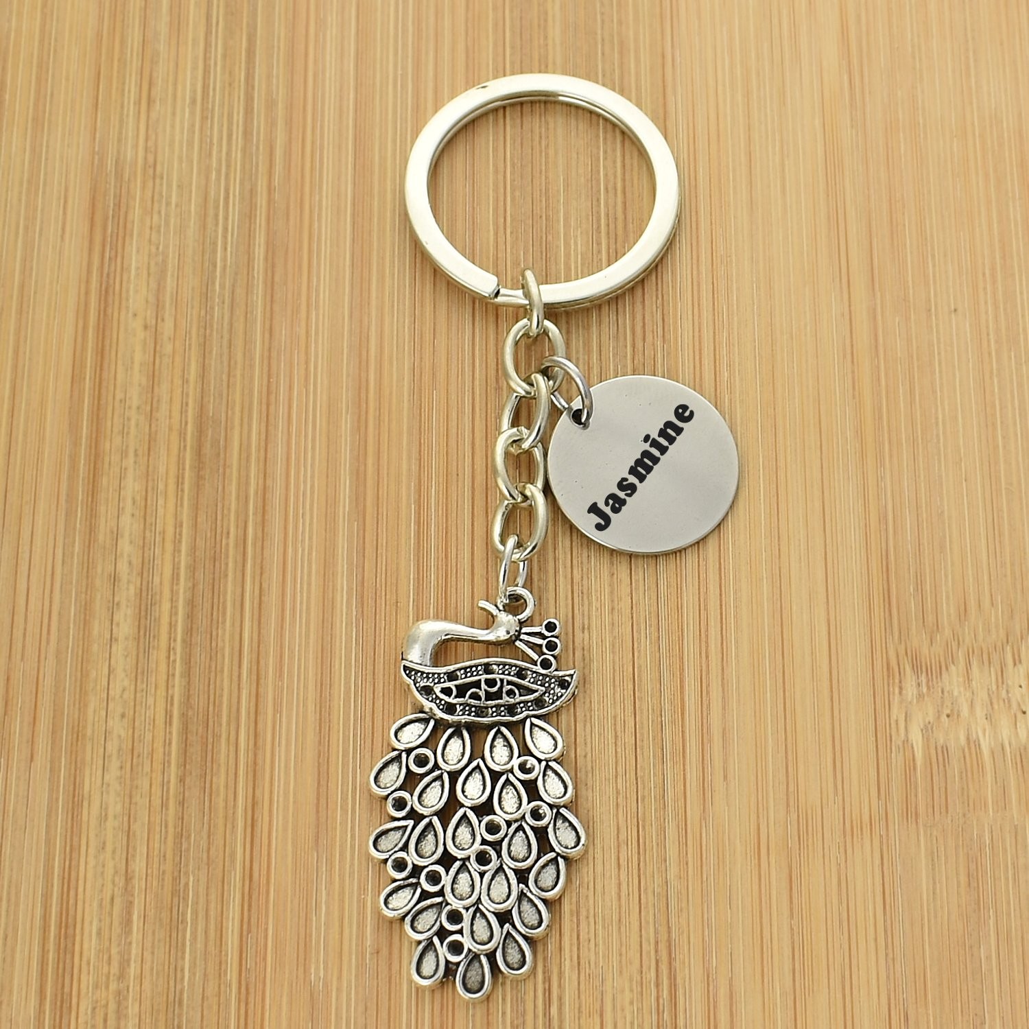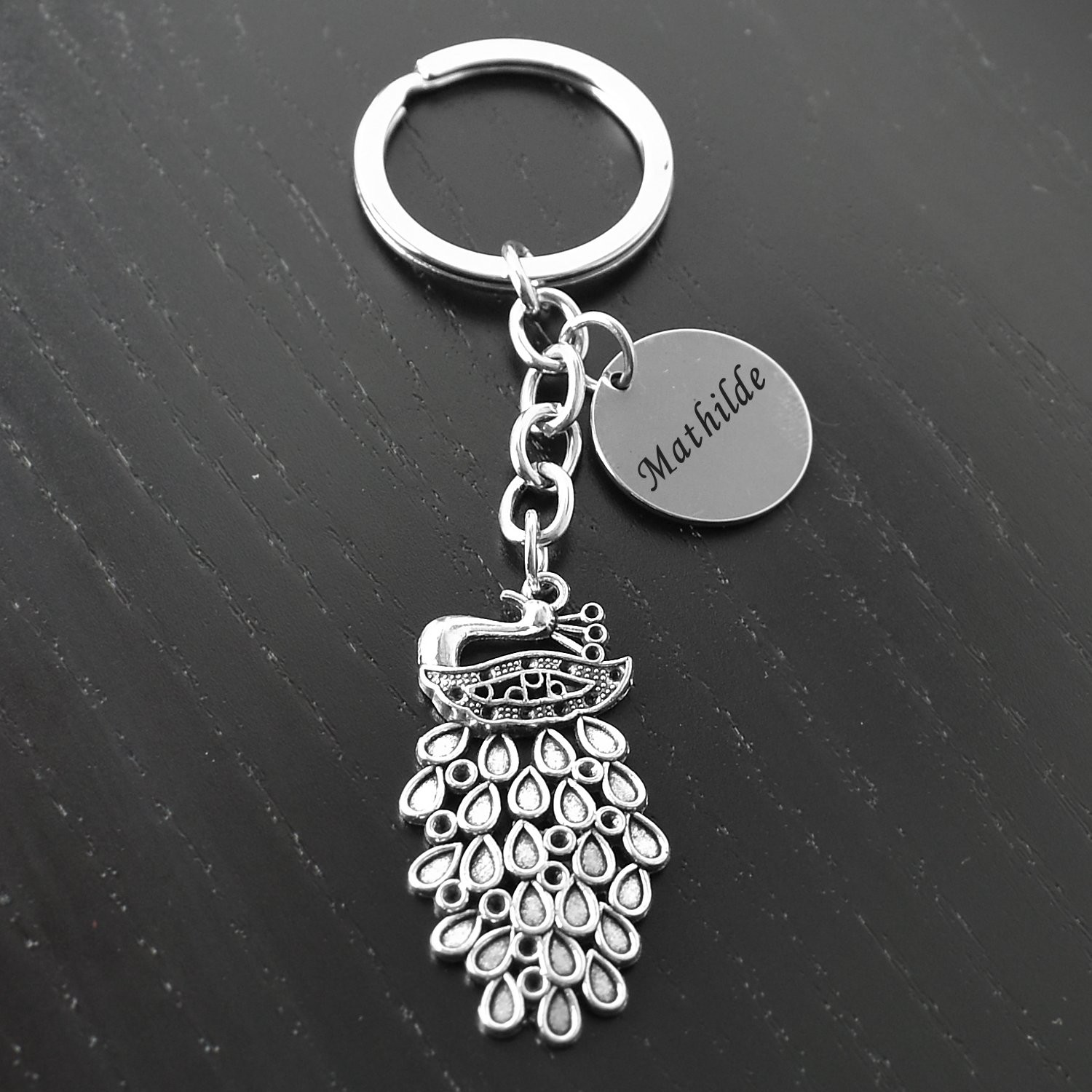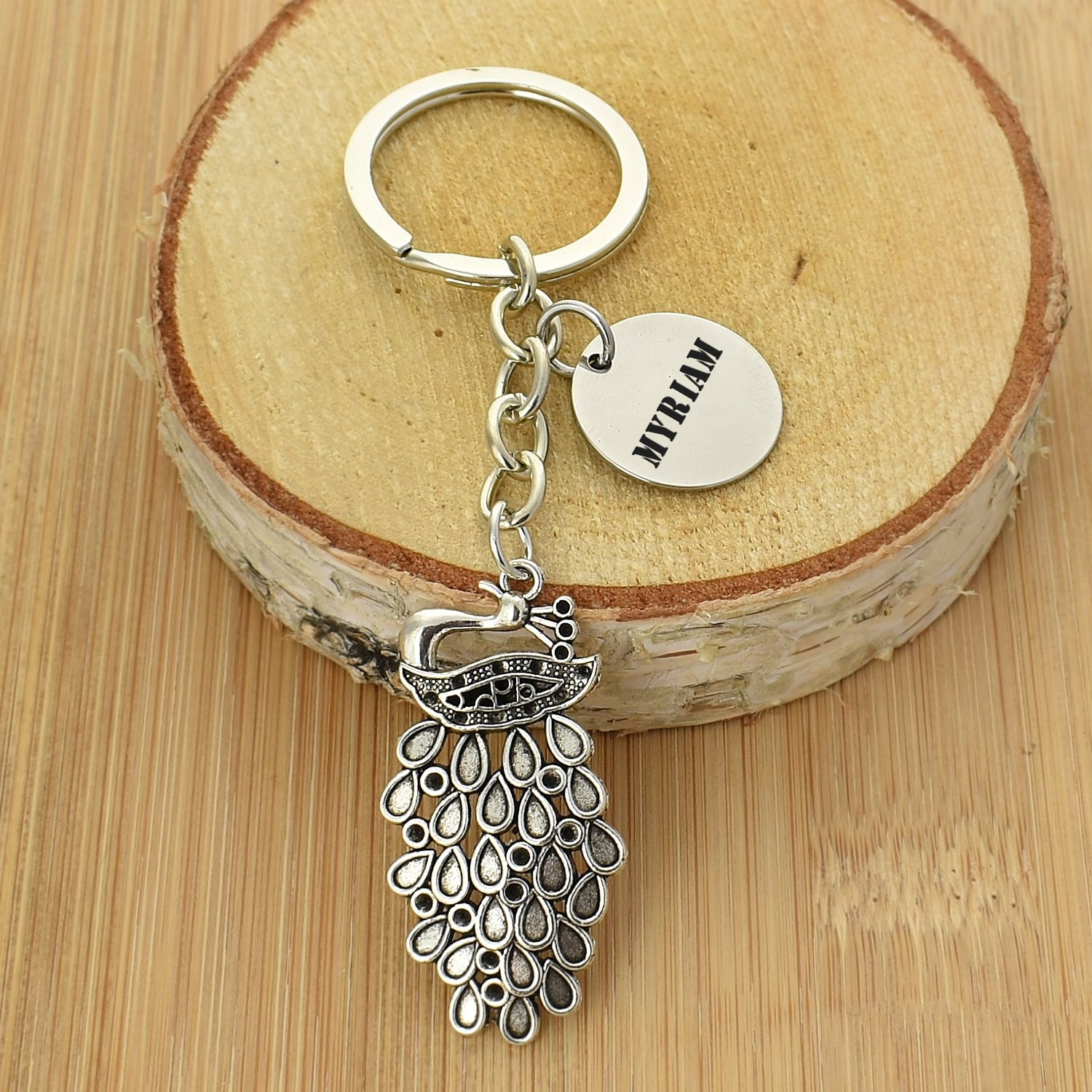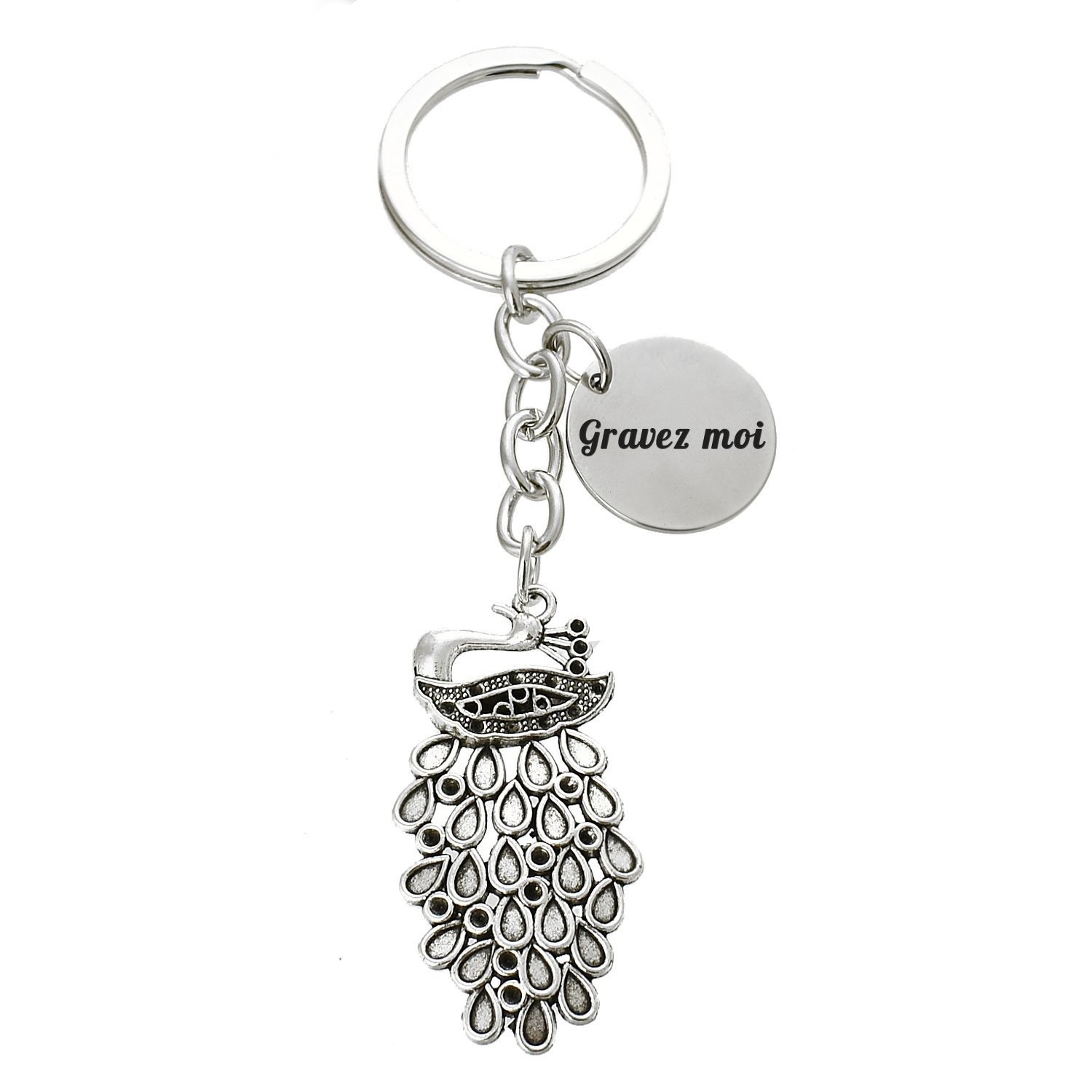 Porte-clés Paon gravé — Queue Déployée Cadeau Élégance Personnalisé Métal