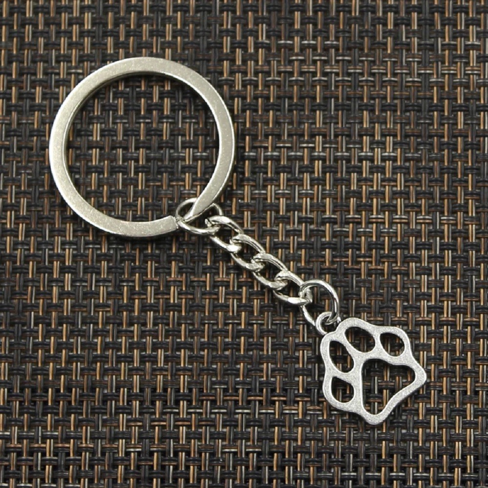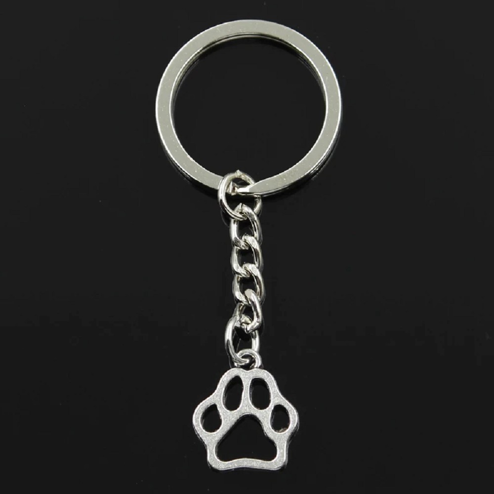 Le pendentif reprend la forme d'une empreinte de patte ajourée en métal argenté— coussinets et contour bien dessinés, découpe propre et légère. Le design est épuré, immédiatement reconnaissable, aussi bien pour un chien que pour un chat. L'ensemble est monté sur un anneau porte-clés standard avec chaîne intermédiaire, solide et résistant à l'usure du quotidien sans ternir.