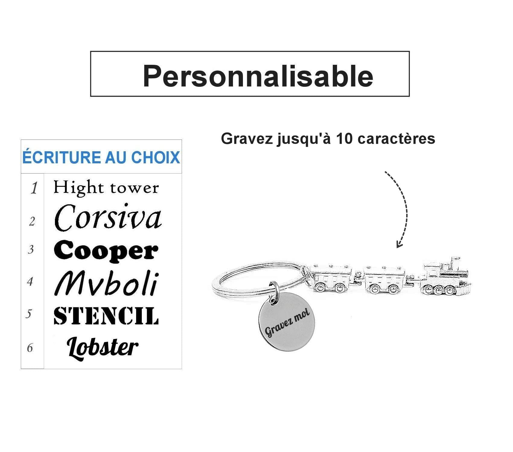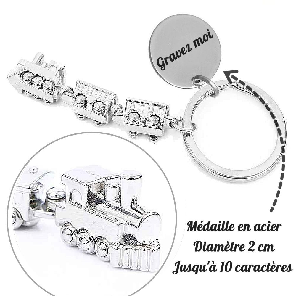 u cherches un cadeau pour quelqu’un qui connaît tous les modèles de locomotives par cœur, qui travaille sur les rails ou qui s’émerveille encore devant un train en marche ? Ce porte-clés train avec locomotive et wagons argentés parle directement à tous les passionnés de voie ferrée. On peut graver un prénom, une date de départ en retraite ou un surnom comme « Le Cheminot ».