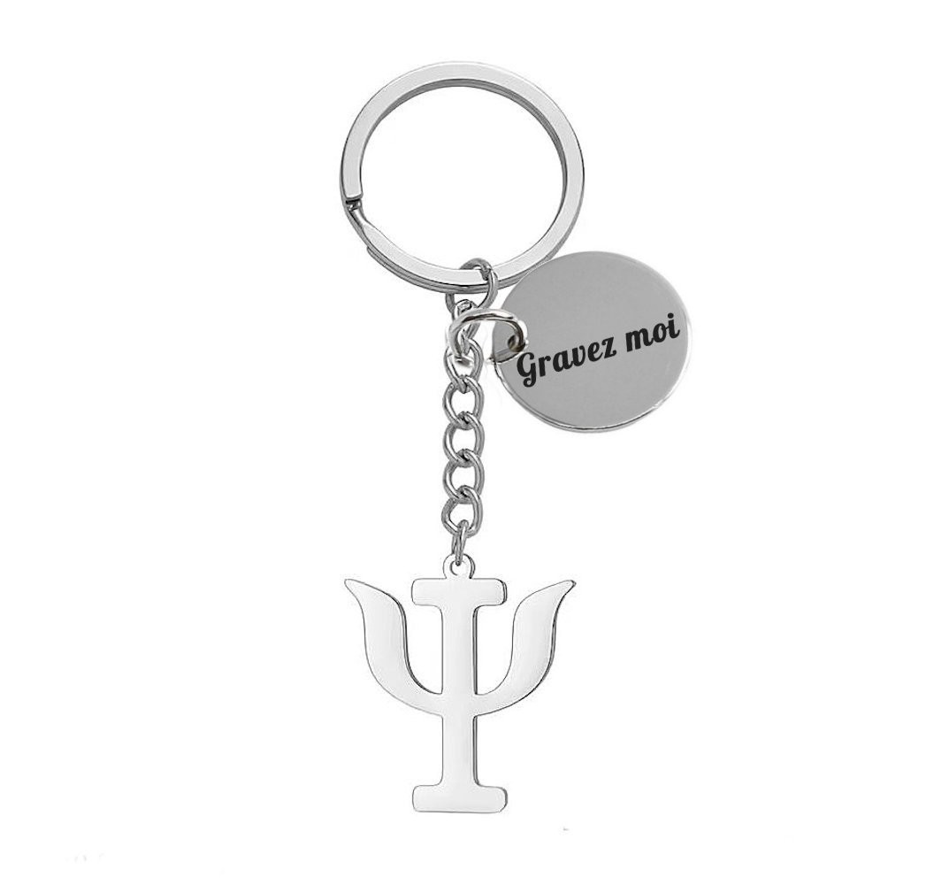 Offrir un cadeau à une psychologue ou à quelqu'un qui termine ses études de psycho, c'est pas toujours simple — trop générique et ça rate, trop compliqué et ça fait faux. Ce porte-clés avec la lettre Psi, symbole universel de la psychologie, coche toutes les cases : c'est reconnaissable, sobre, et ça parle directement à quelqu'un dont le cabinet, le DSM et les heures de supervision font partie du quotidien. Parfait pour une remise de diplôme, un début de stage, ou juste pour lui dire que ce qu'elle fait a de la valeur.