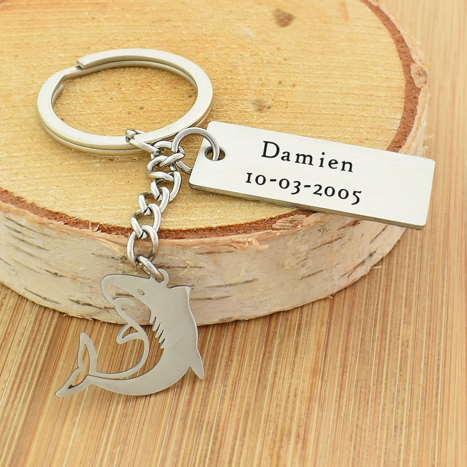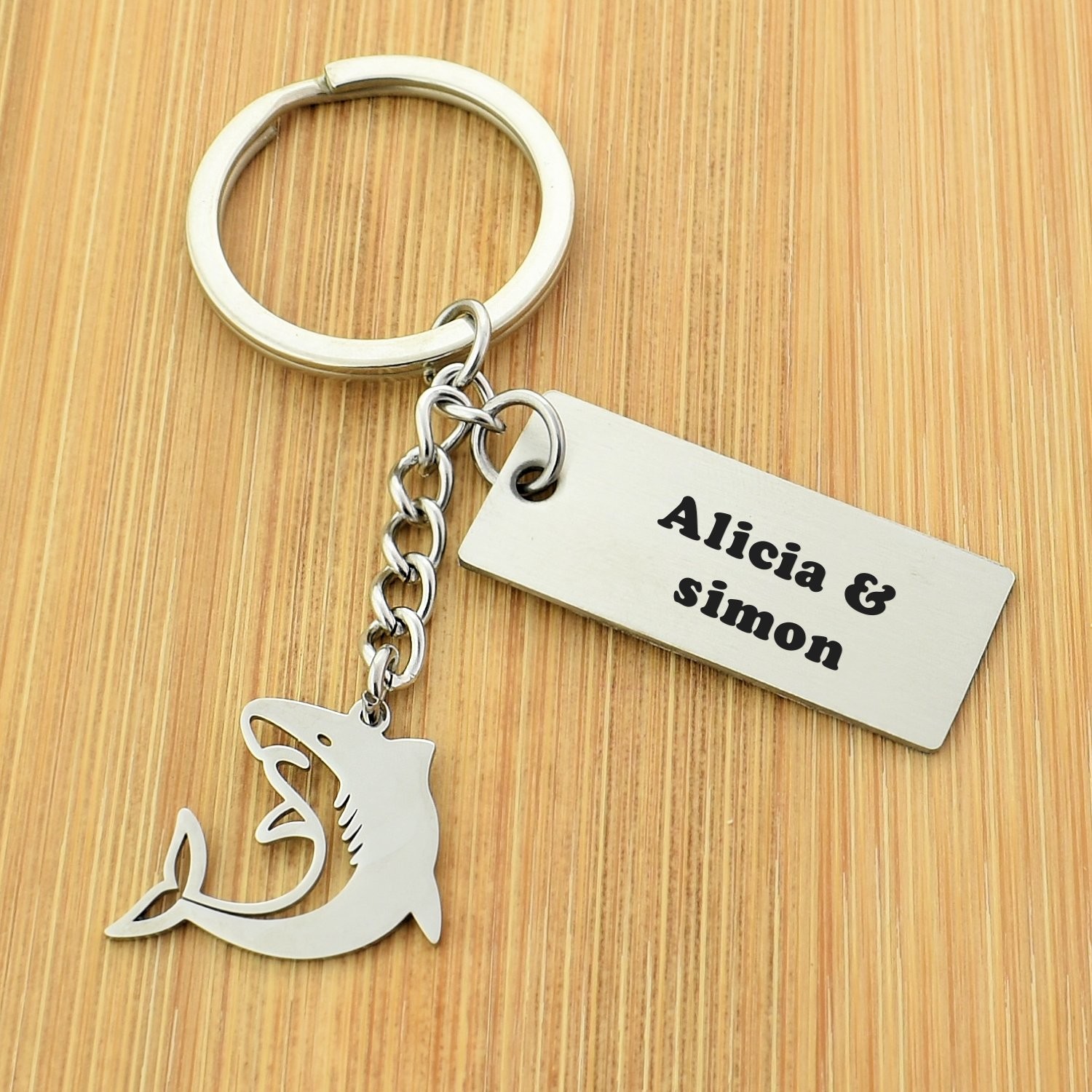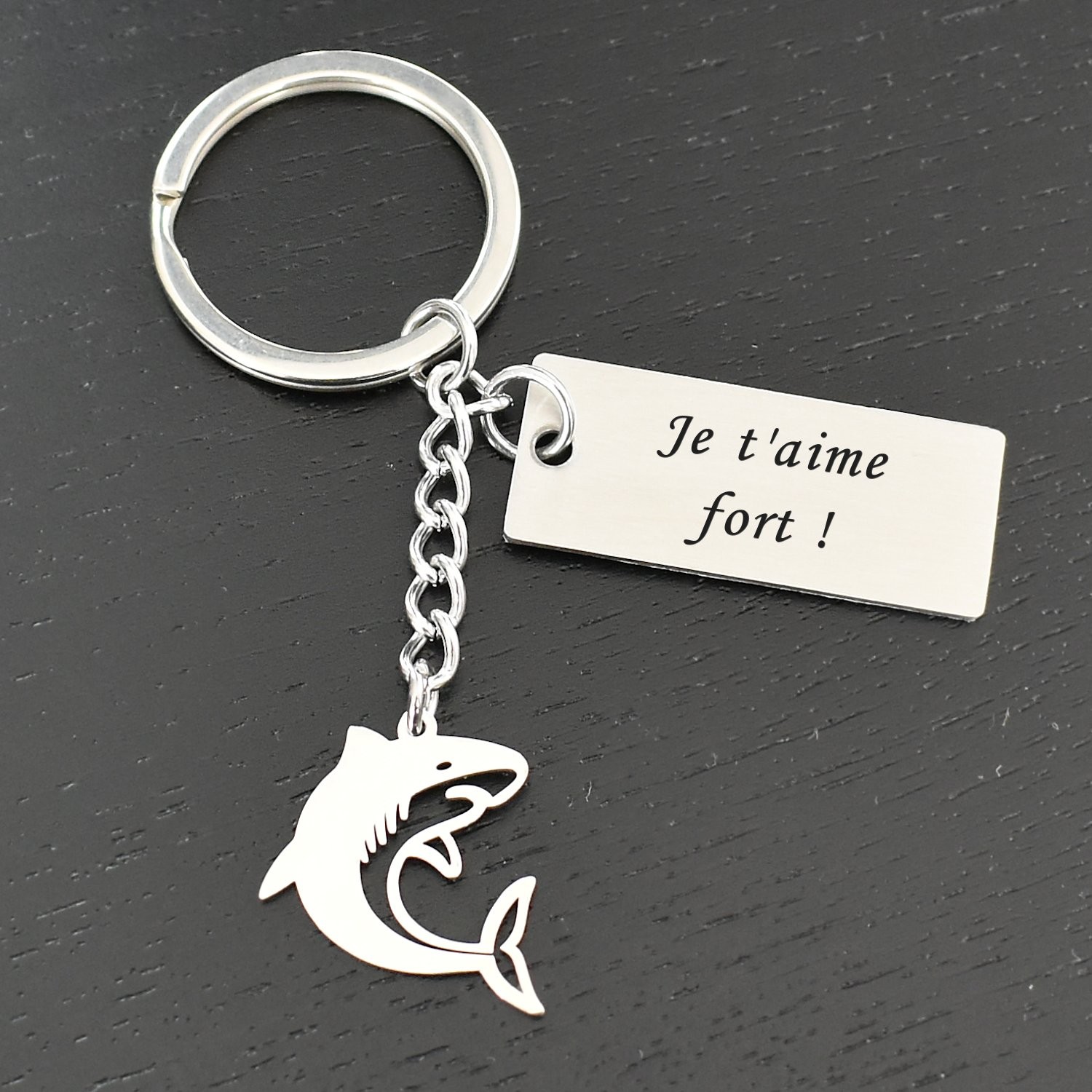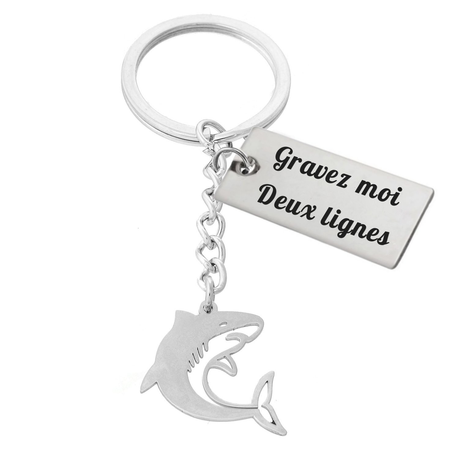 Porte-clés Requin gravé — Plaque 2 Lignes Cadeau Mer Ocean Personnalisé Acier