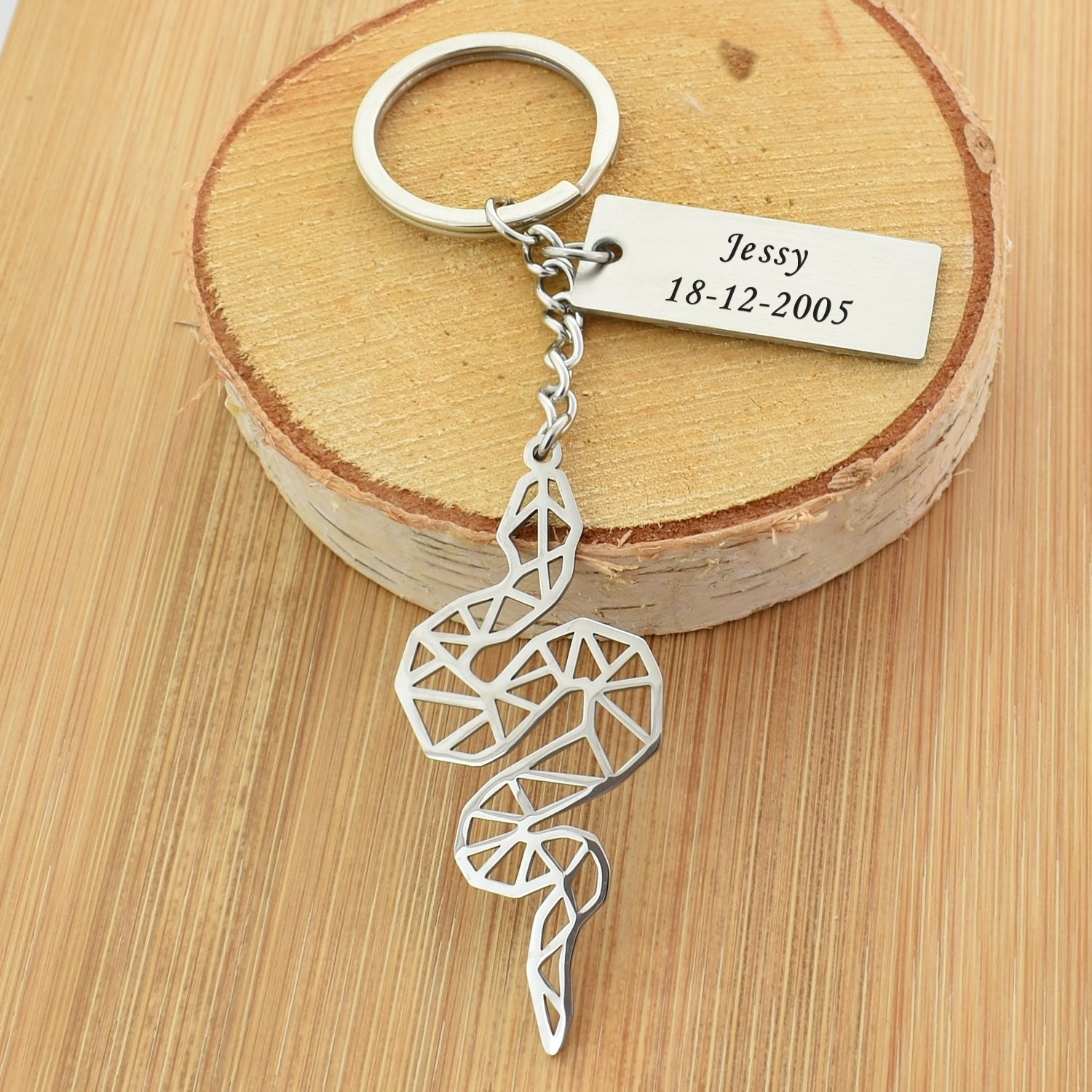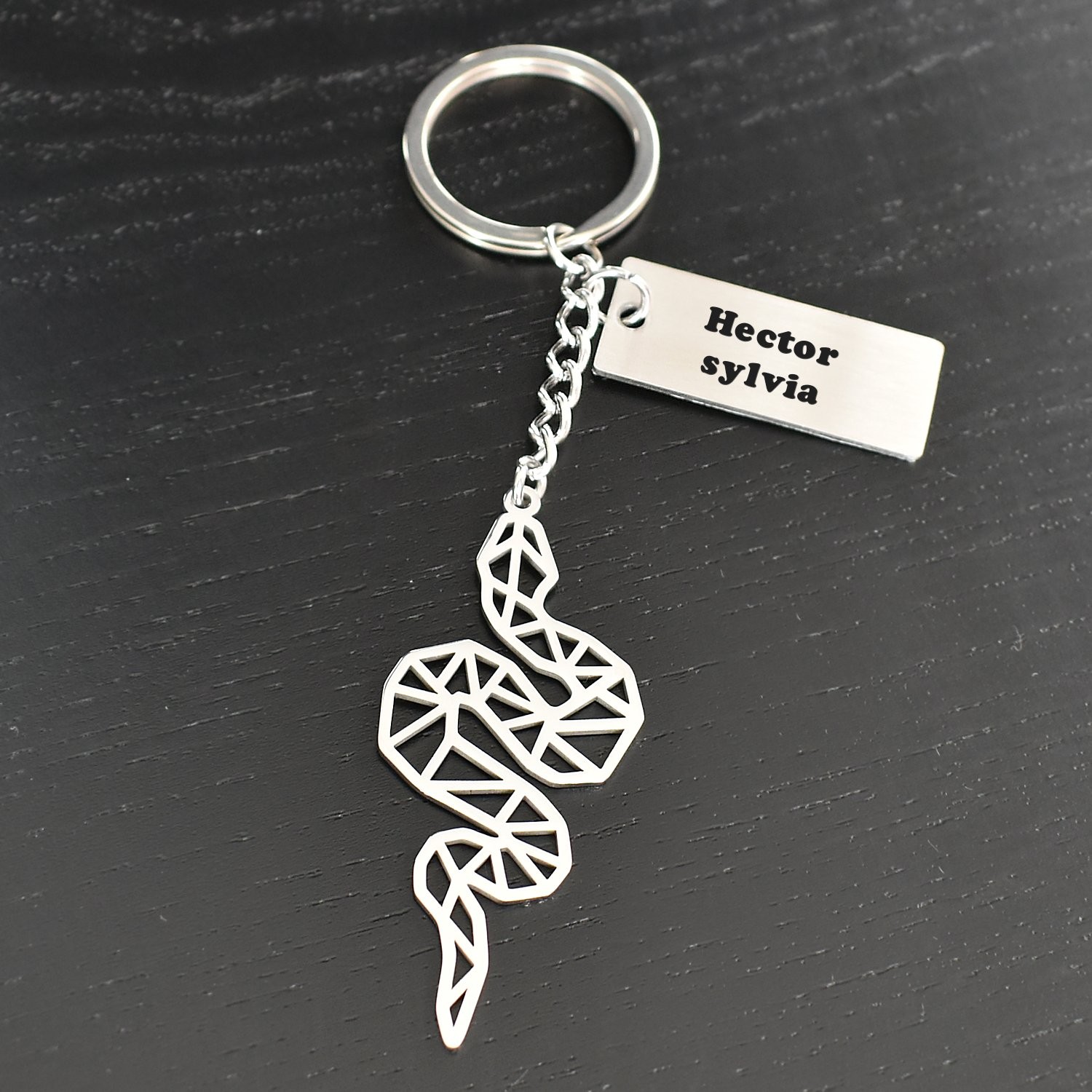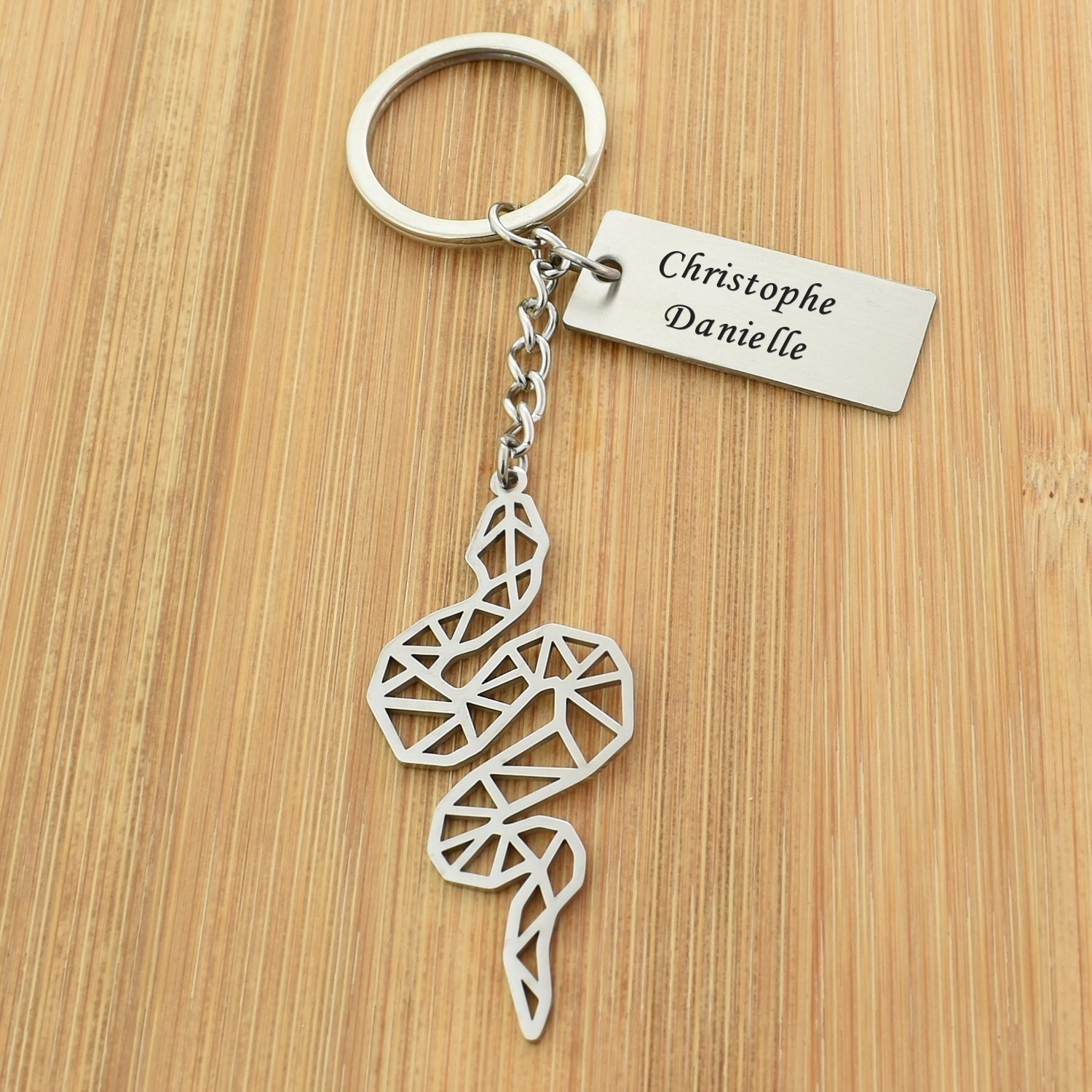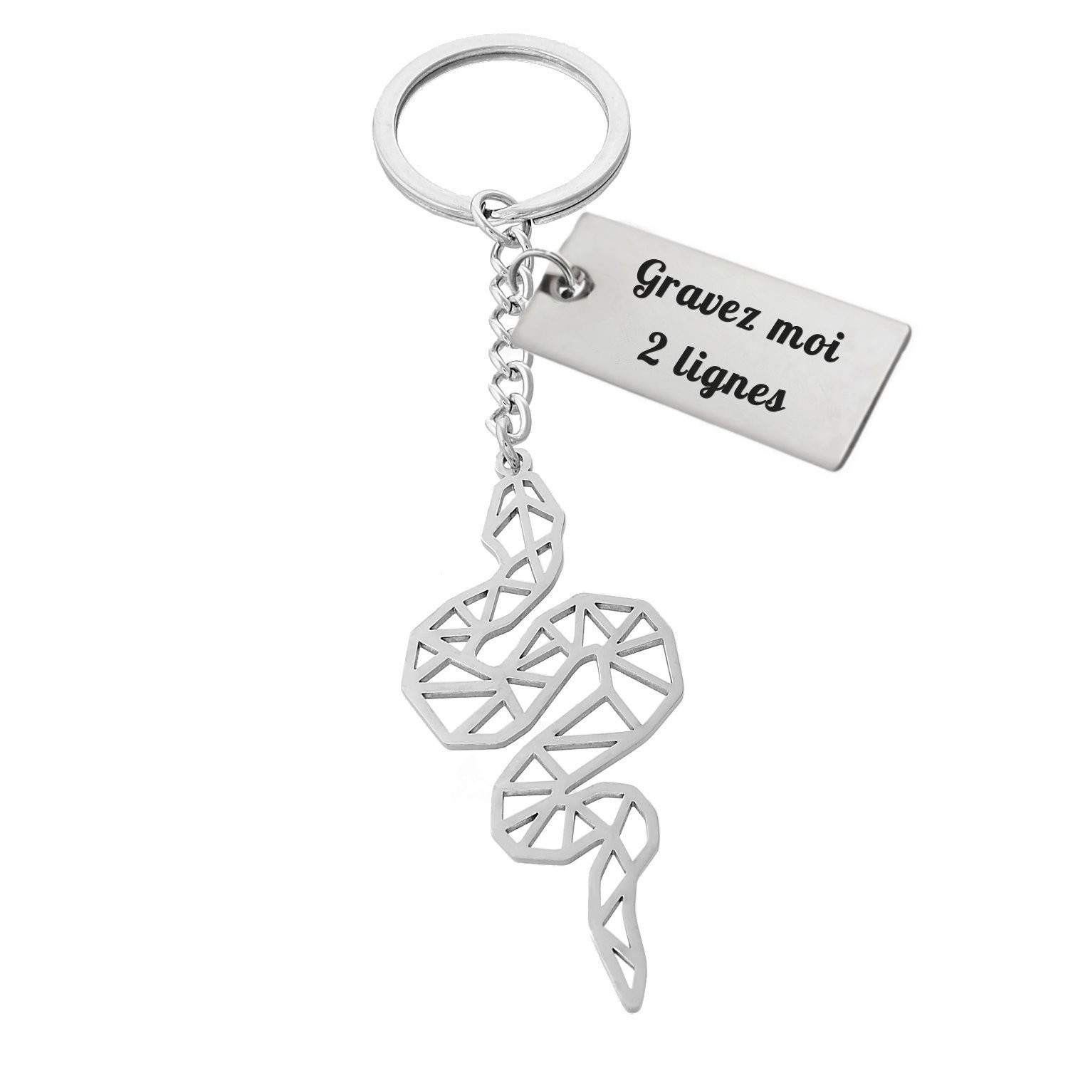 Porte-clés Serpent Origami gravé — Plaque 2 Lignes Cadeau Reptile Personnalisé Acier