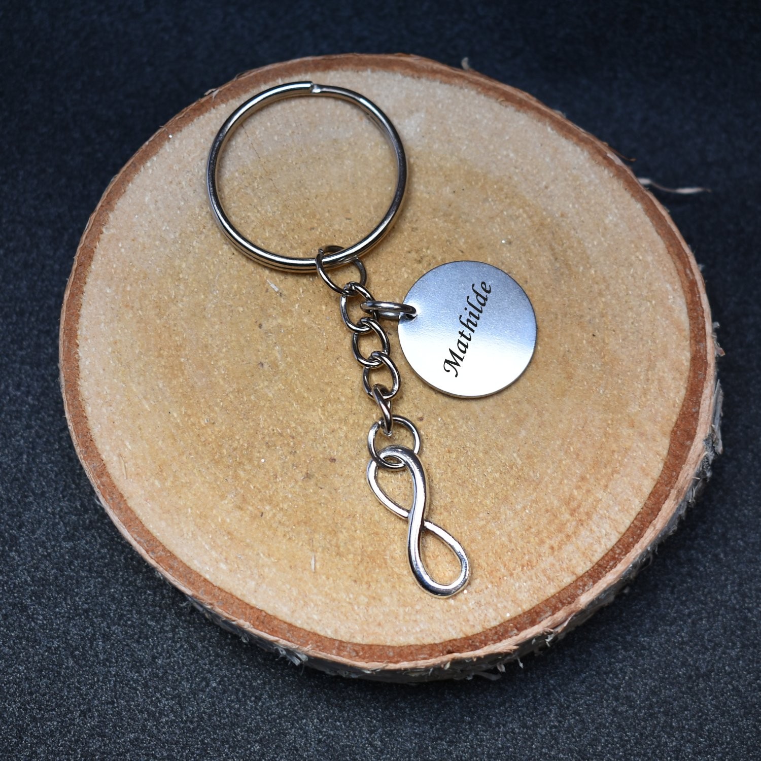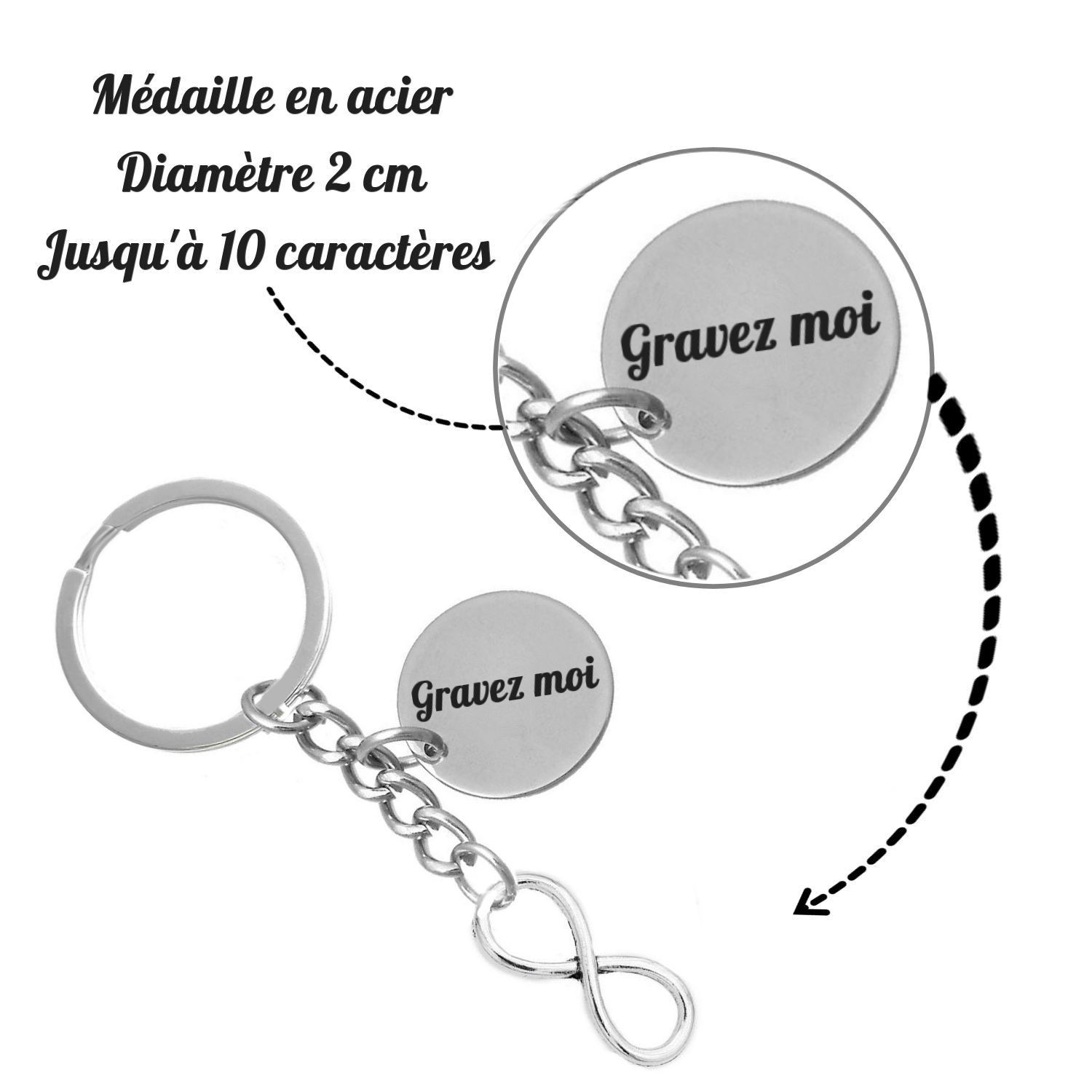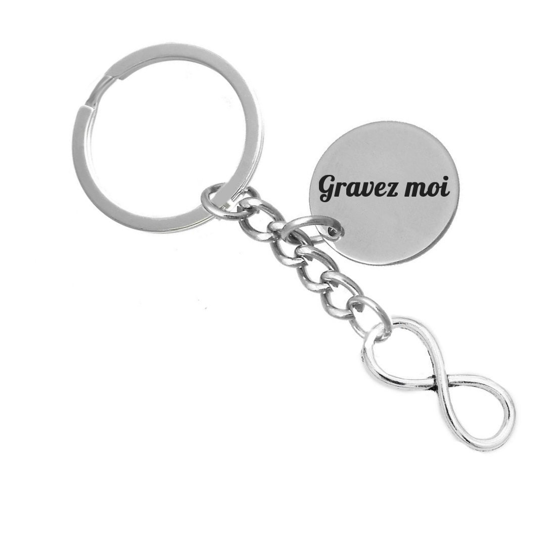 Porte-clés Infini gravé — Médaillon Personnalisé Cadeau Amour Amitié Métal Argenté