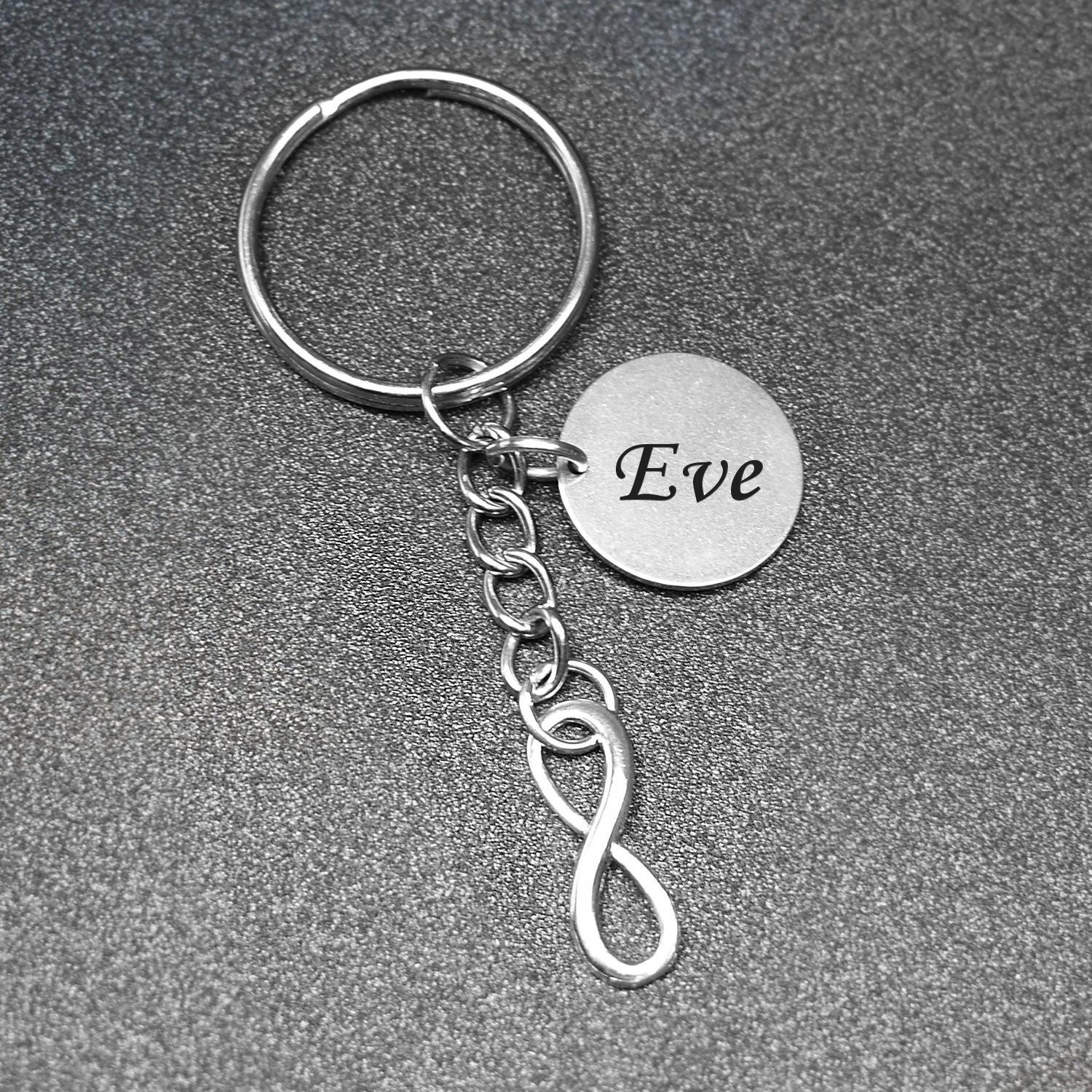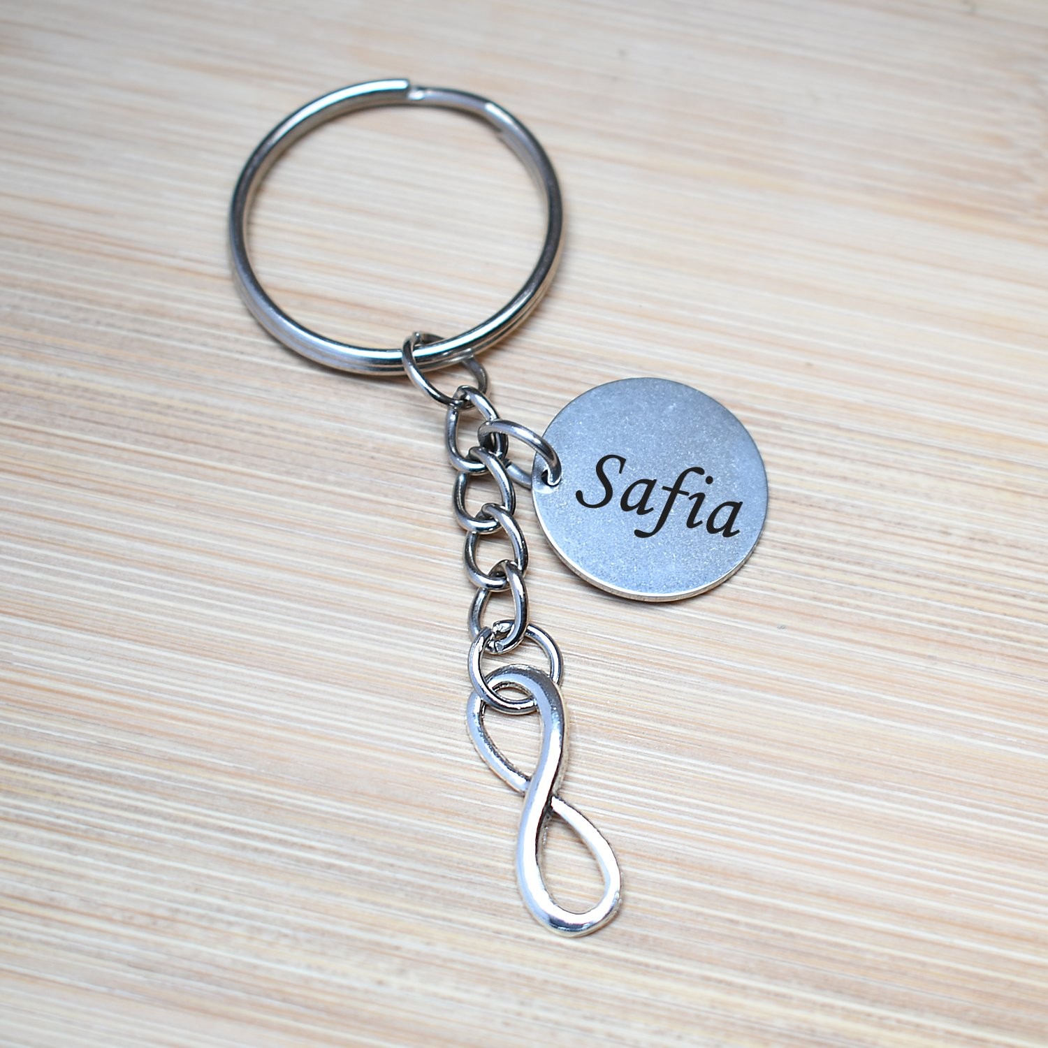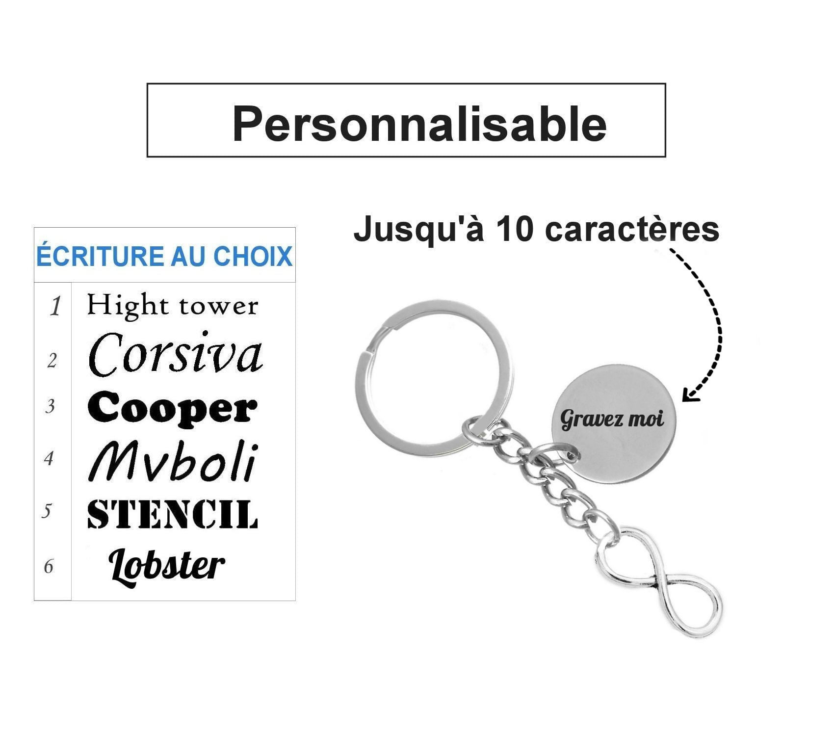 Porte-clés Infini gravé — Médaillon Personnalisé Cadeau Amour Amitié Métal Argenté