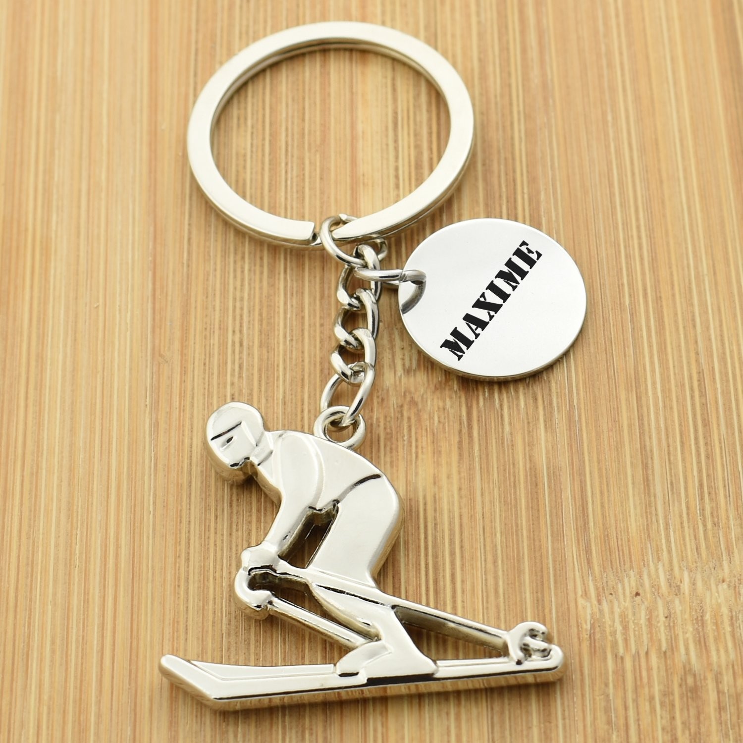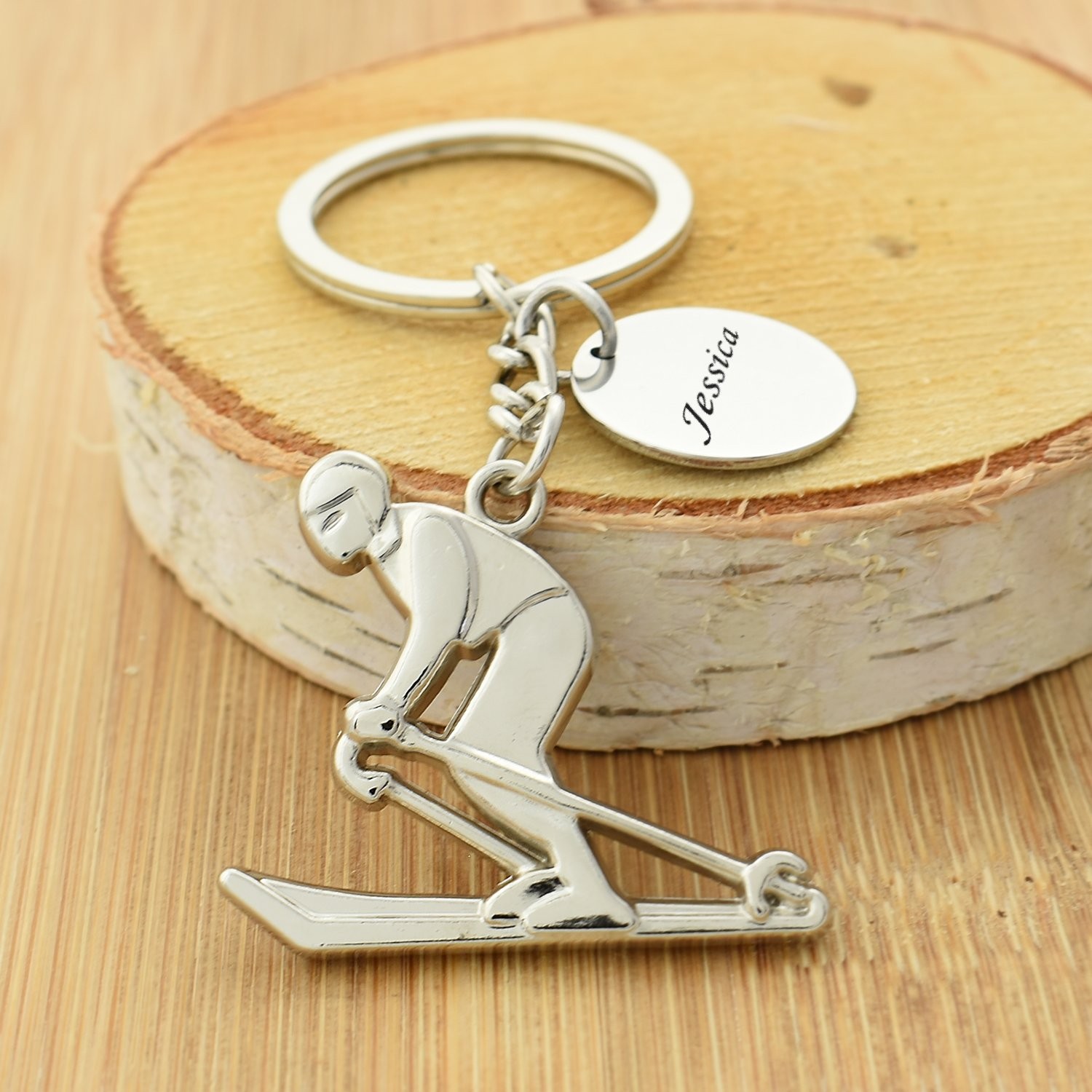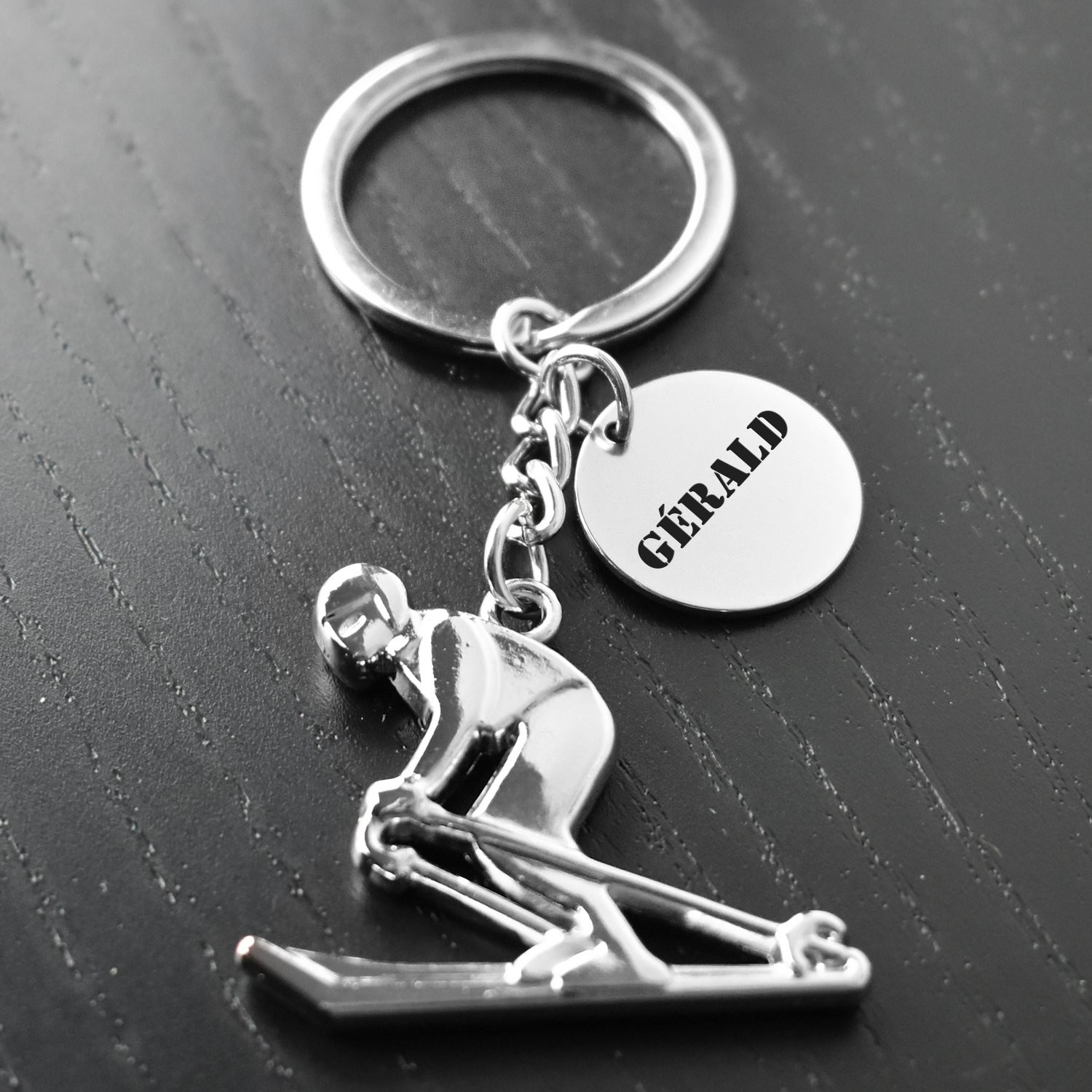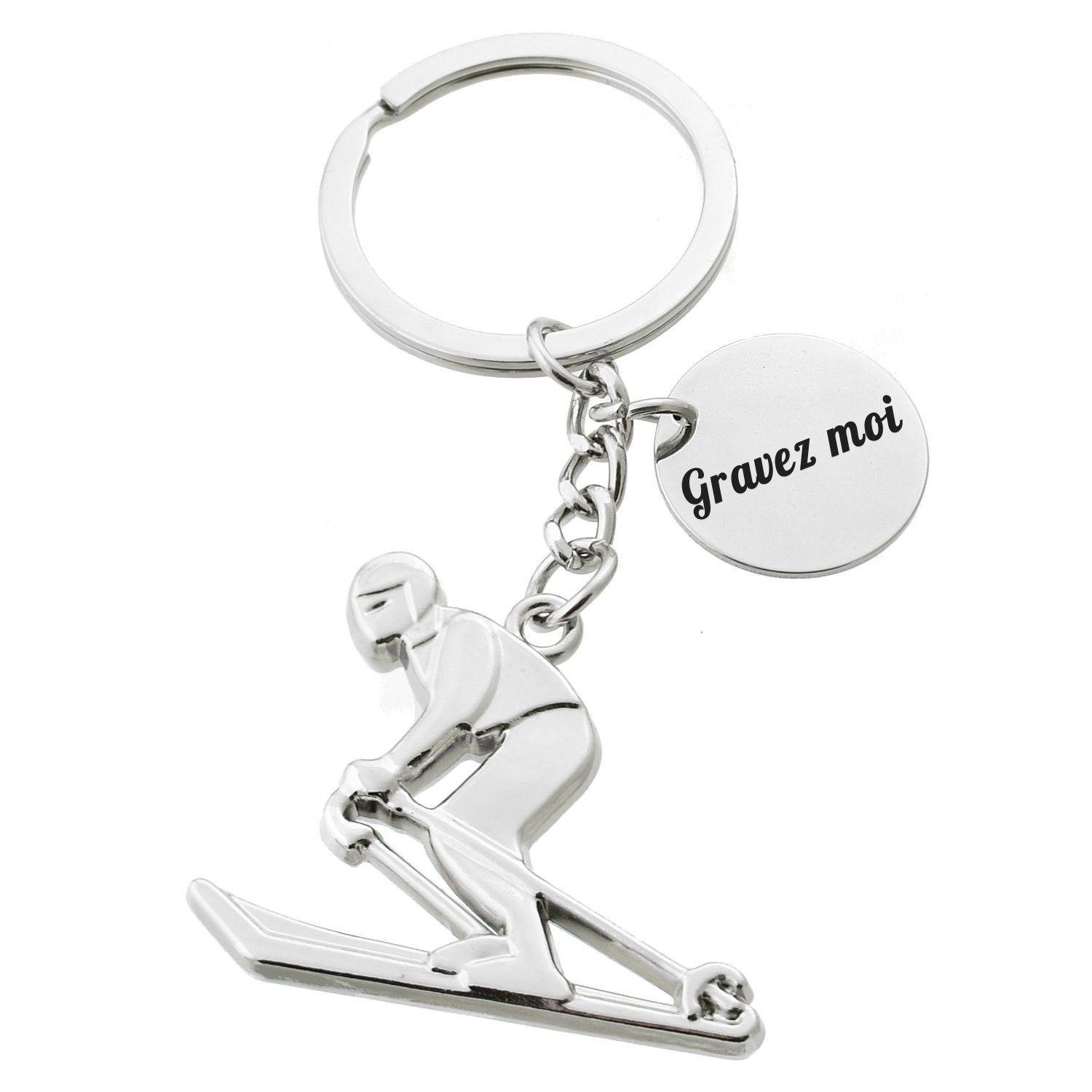 Porte-clés Ski gravé — Skieur Personnalisé Cadeau Montagne Argenté