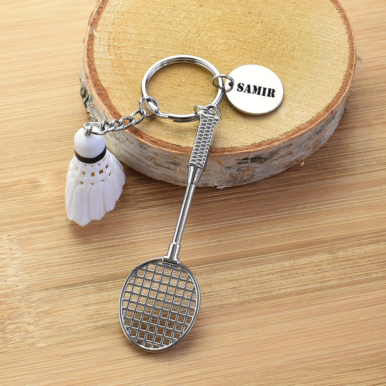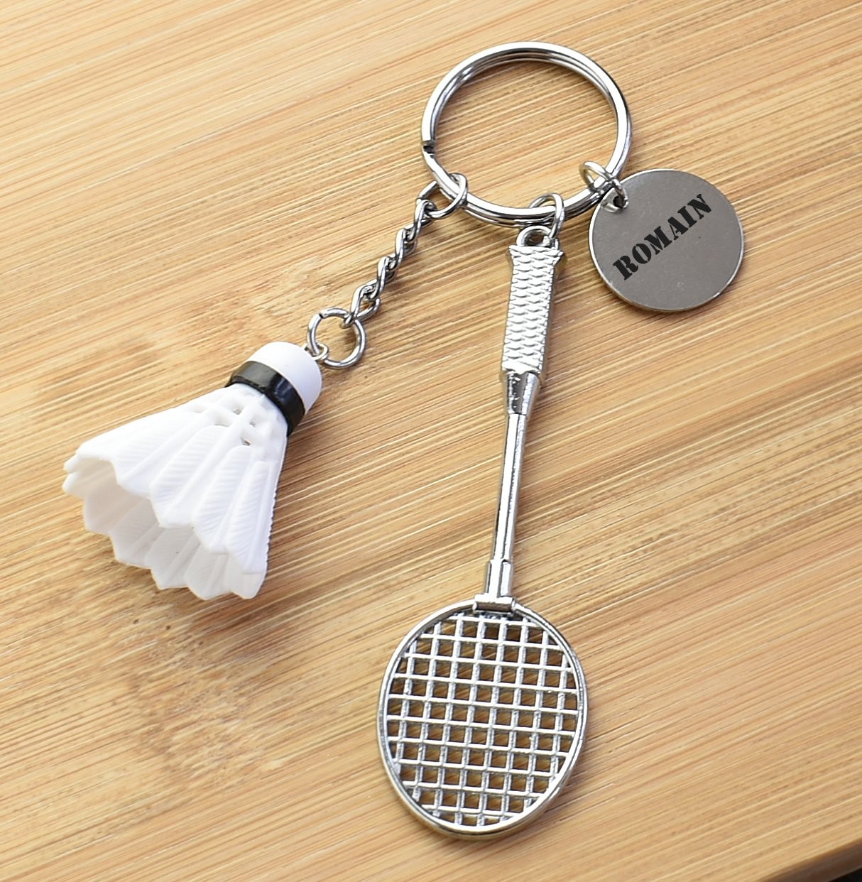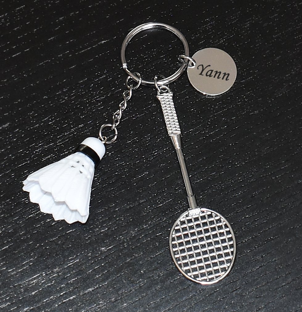 Porte-clés Badminton gravé — Raquette, Volant & Médaille personnalisée