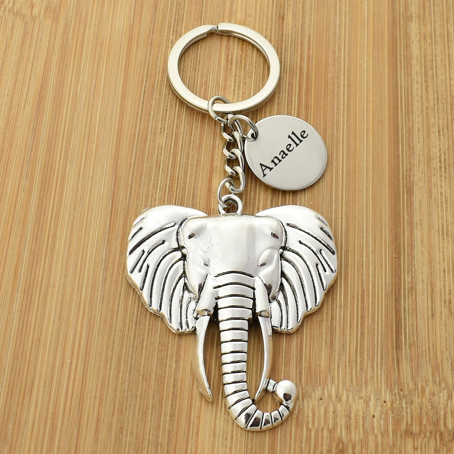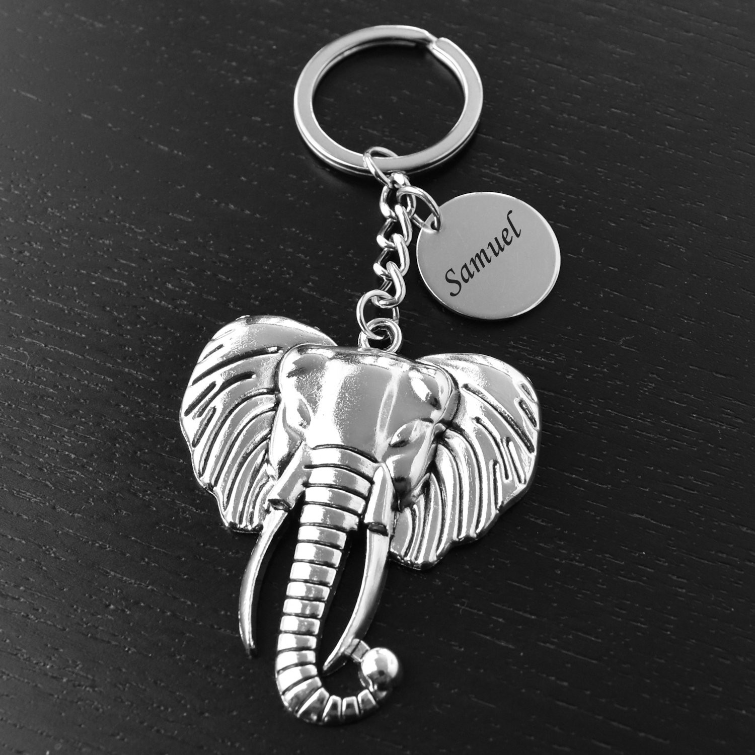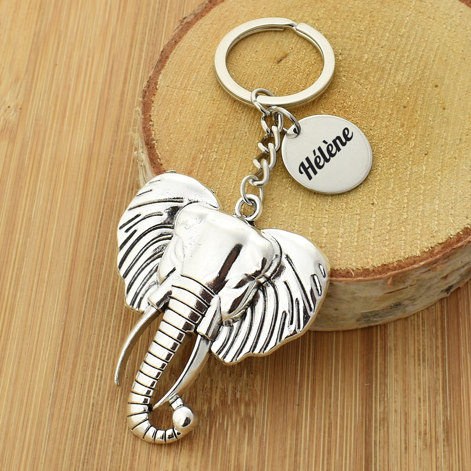 Porte-clés Tête d’Éléphant Personnalisé Gravé – Cadeau Afrique, Sagesse ou Amoureux des Animaux