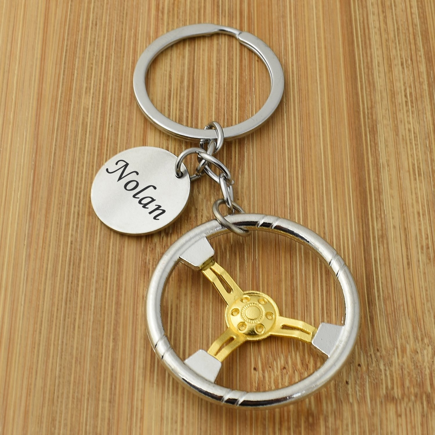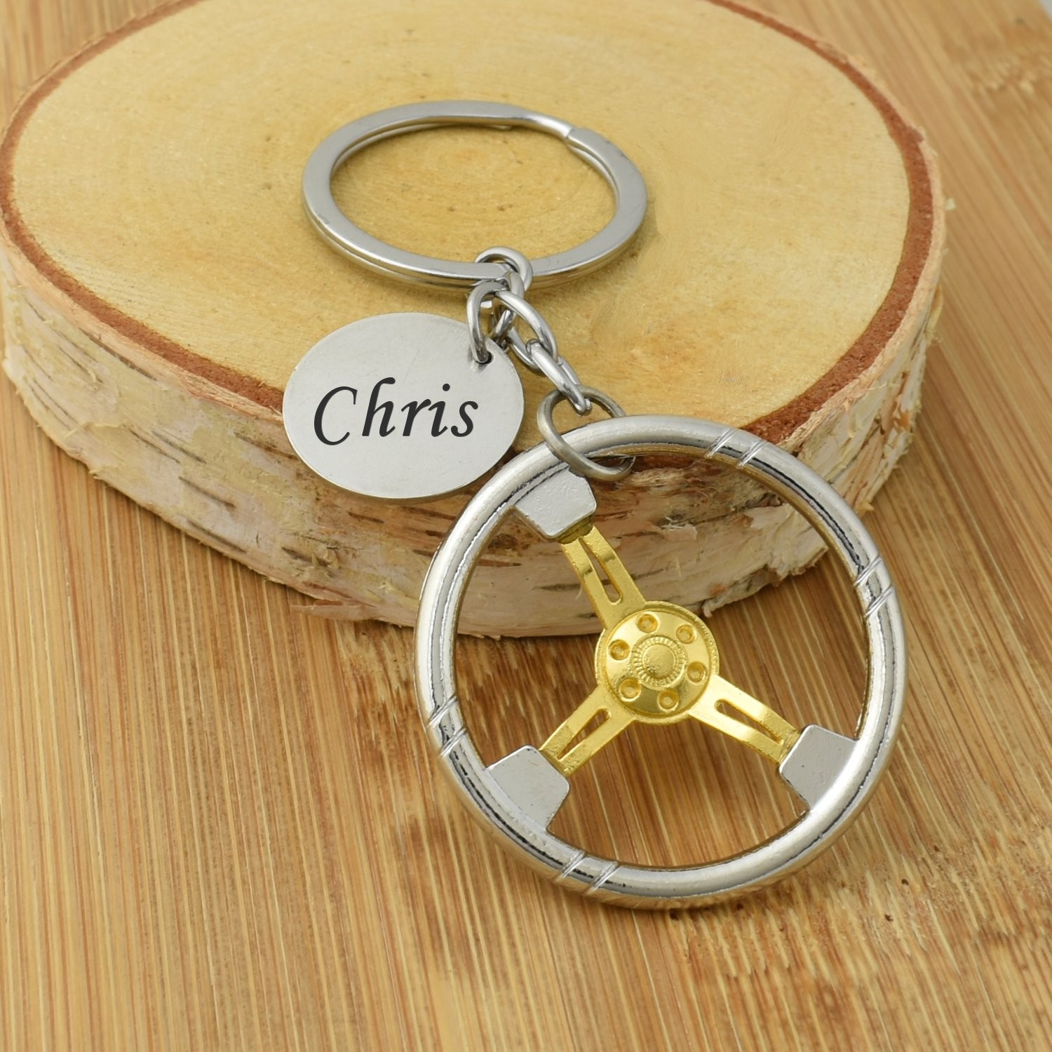 Porte-clés Volant de Voiture Personnalisé Gravé – Cadeau Automobiliste, Passionné de Conduite ou Permis